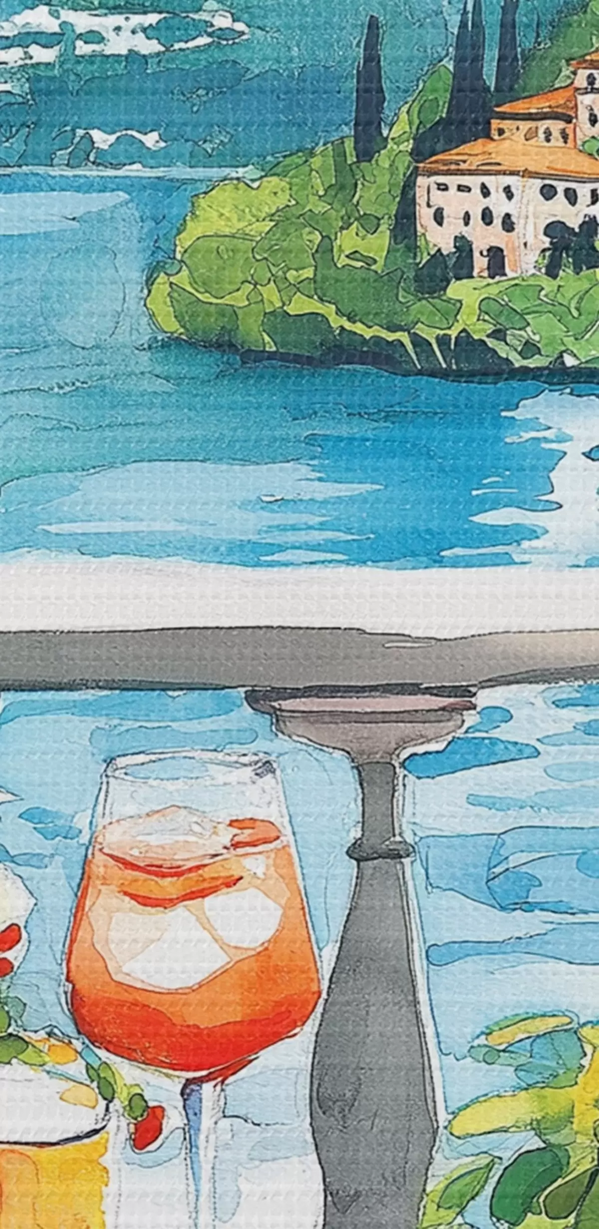 Obraz Taliansko estetika, akvarel, pizza a koktaily, hory Nr. s42434