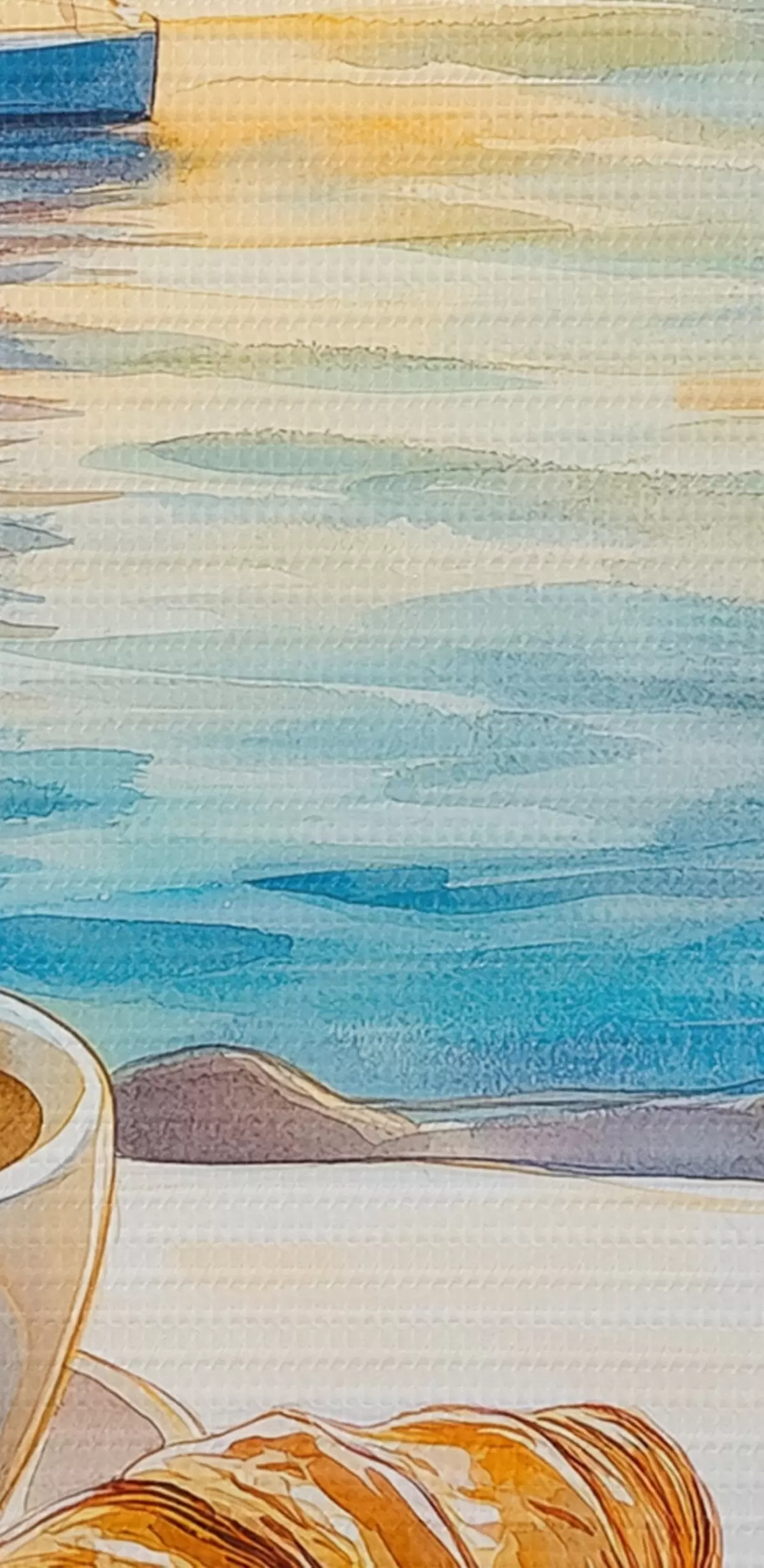 Obraz Dve šálky cappuccina, akvarel, západ slnka, plachetnice, povolanie Nr. s42438