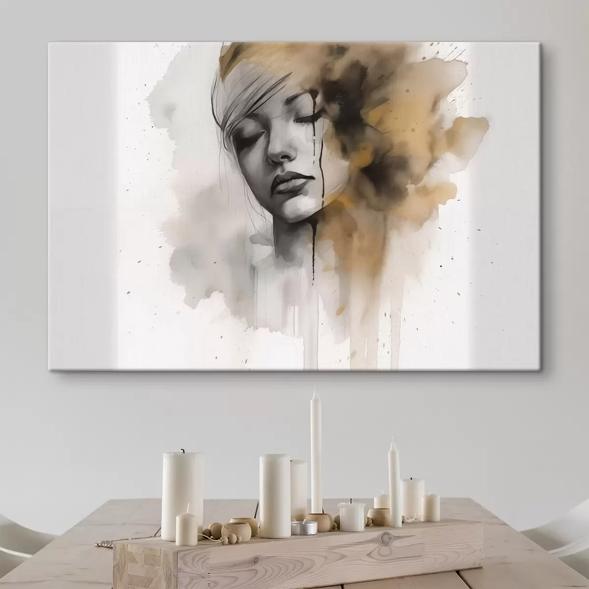 Obraz Portrét dievčaťa technikou akvarelu s abstraktnými tieňmi Nr. s42474