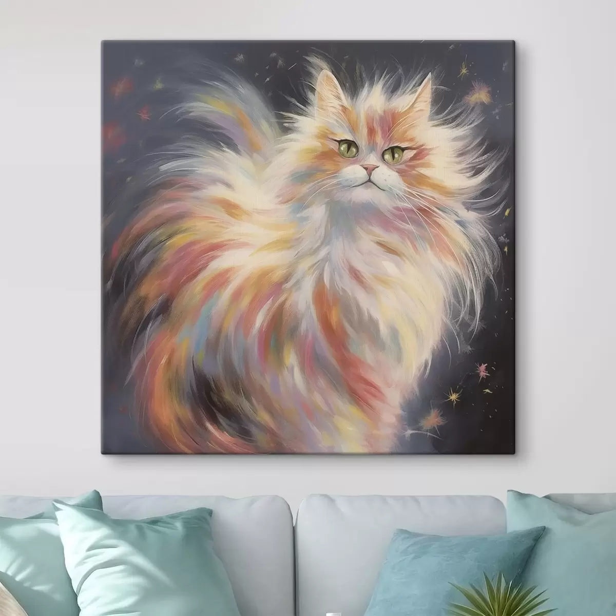 Obraz Chlpatá mačka s farebnou srsťou na tmavom pozadí Nr. s42484