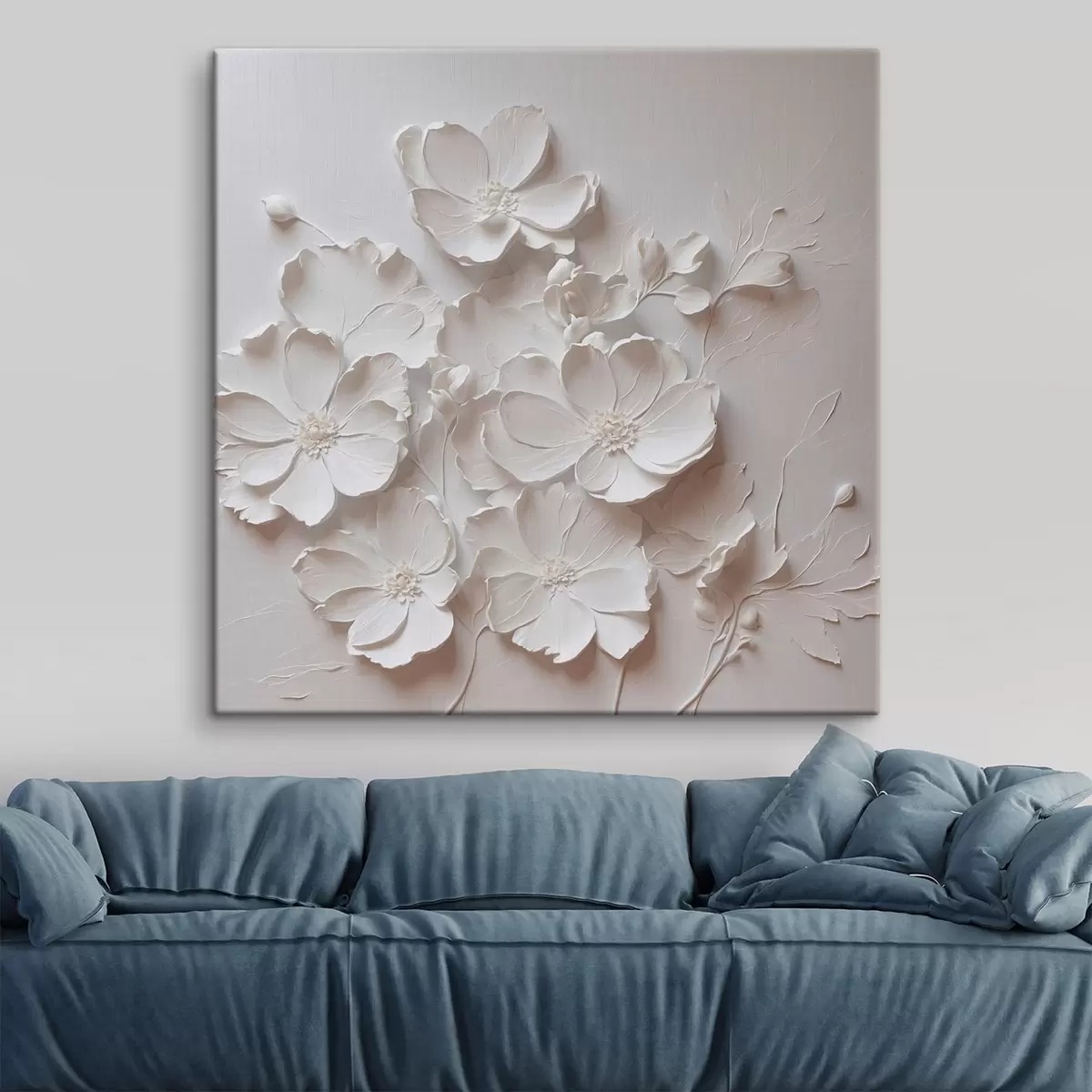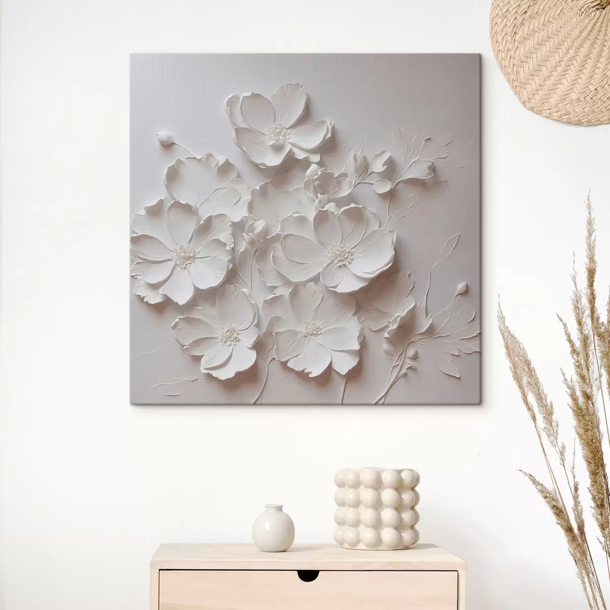Obraz Biele kvety na bielom pozadí v štýle olejomaľby Nr. s42516