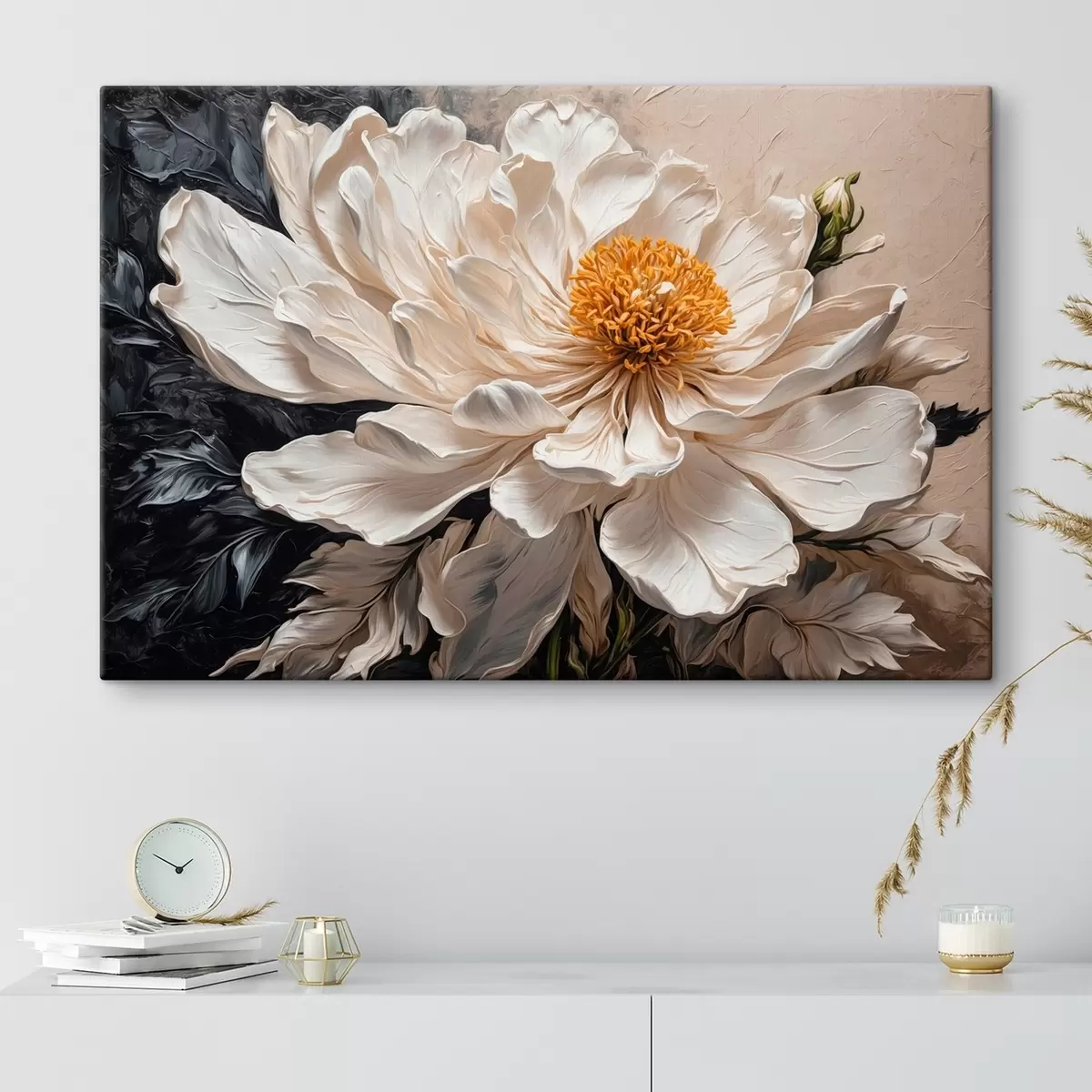 Obraz Biely kvet na čiernom a béžovom pozadí Nr. s42522