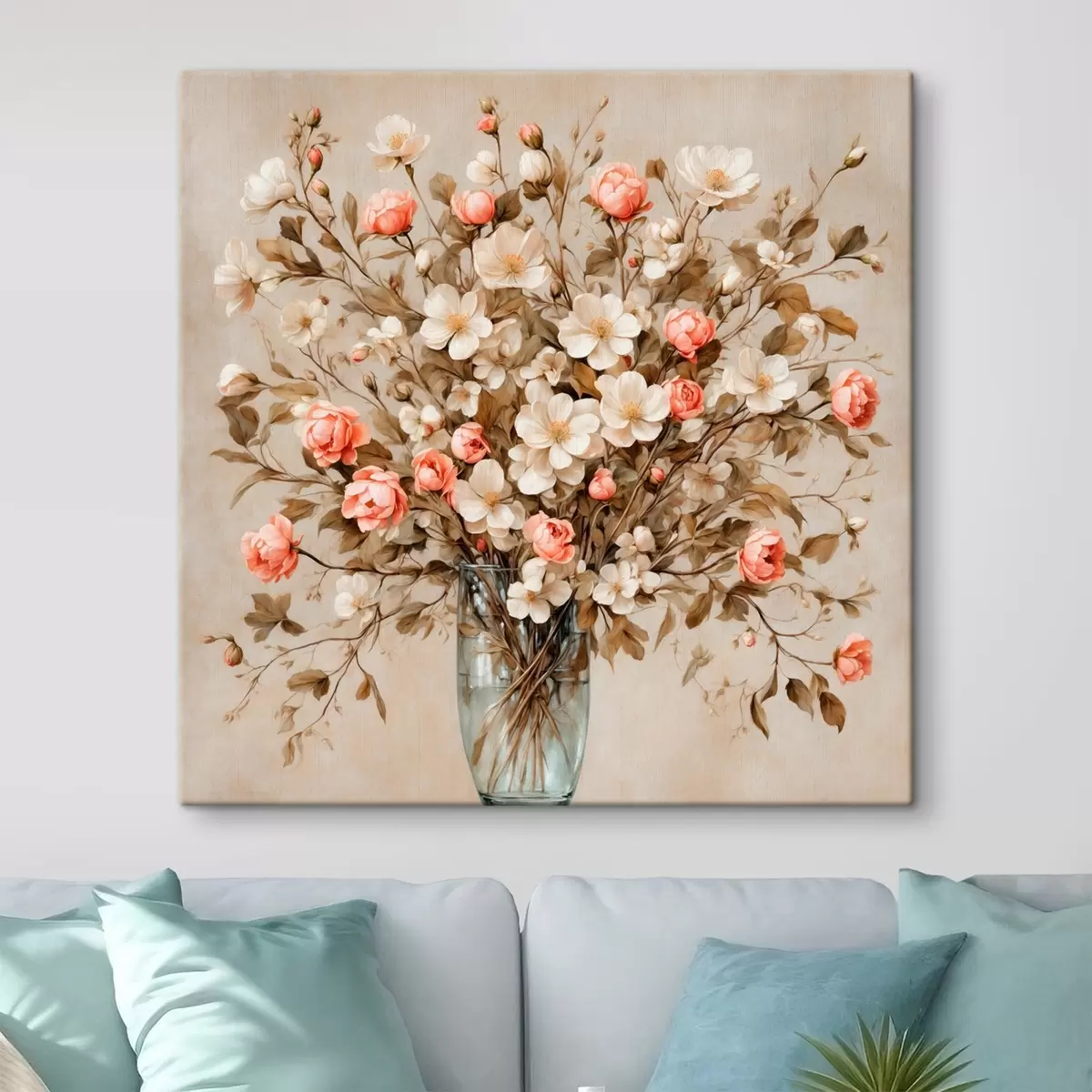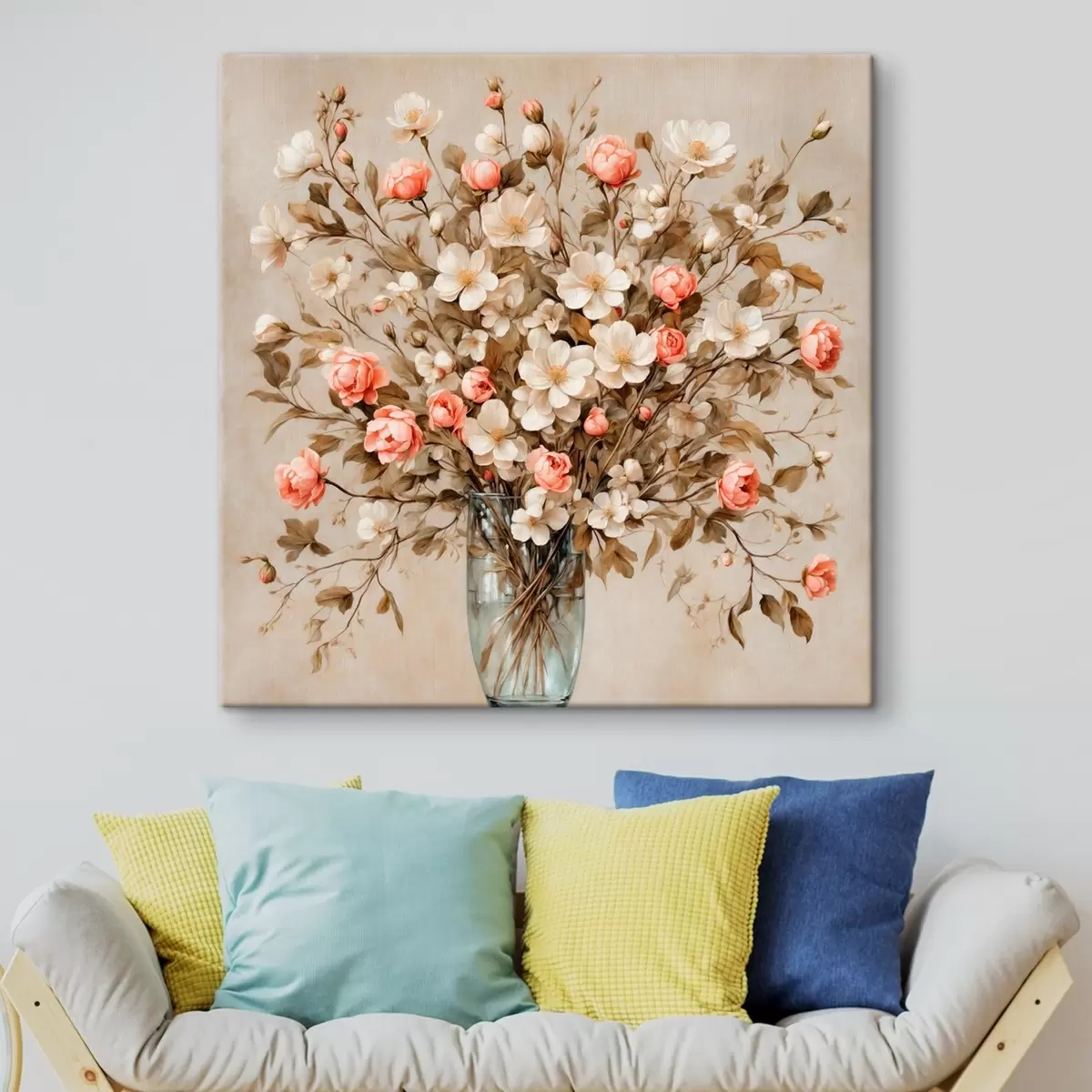Obraz Kvety v priehľadnej váze na béžovom pozadí Nr. s42534