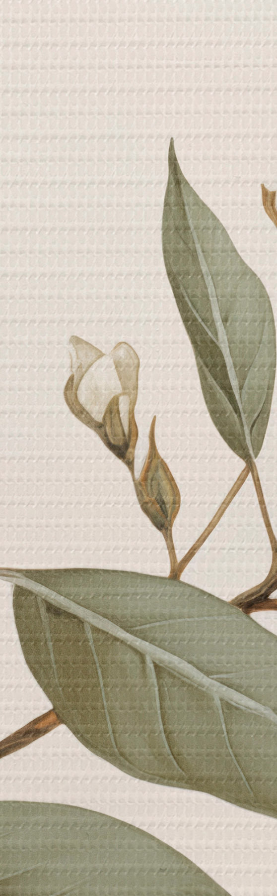 Obraz Jemná vetvička s bielymi kvetmi a zelenými listami na svetlom pozadí s jemnými detailmi a elegantným štýlom. Nr. s42583