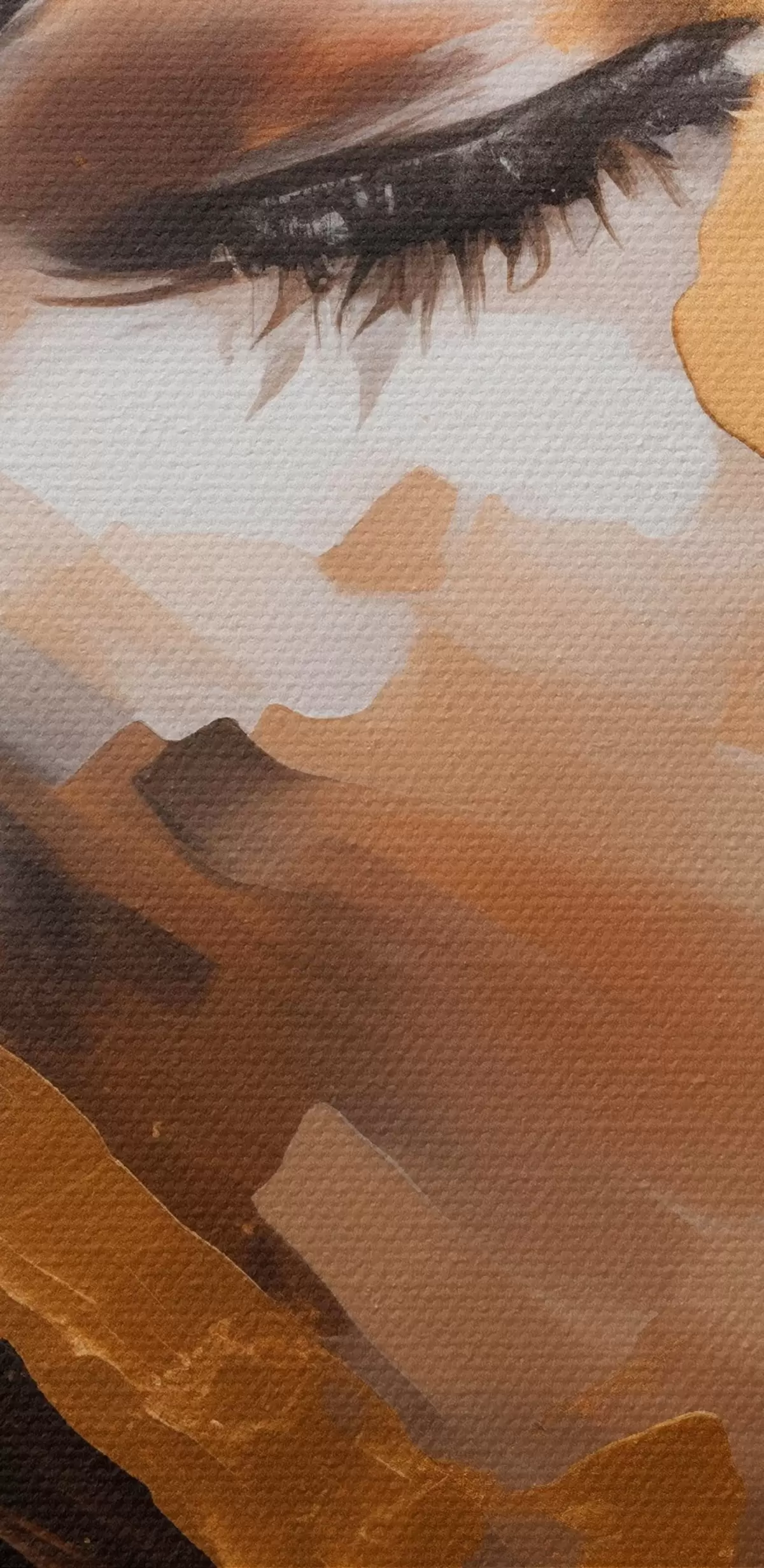 Obraz Abstraktný portrét ženy s jemným výrazom tváre v teplých tónoch s dynamickými ťahmi štetca, ktoré jej dodávajú hĺbku a emócie. Nr. s42627
