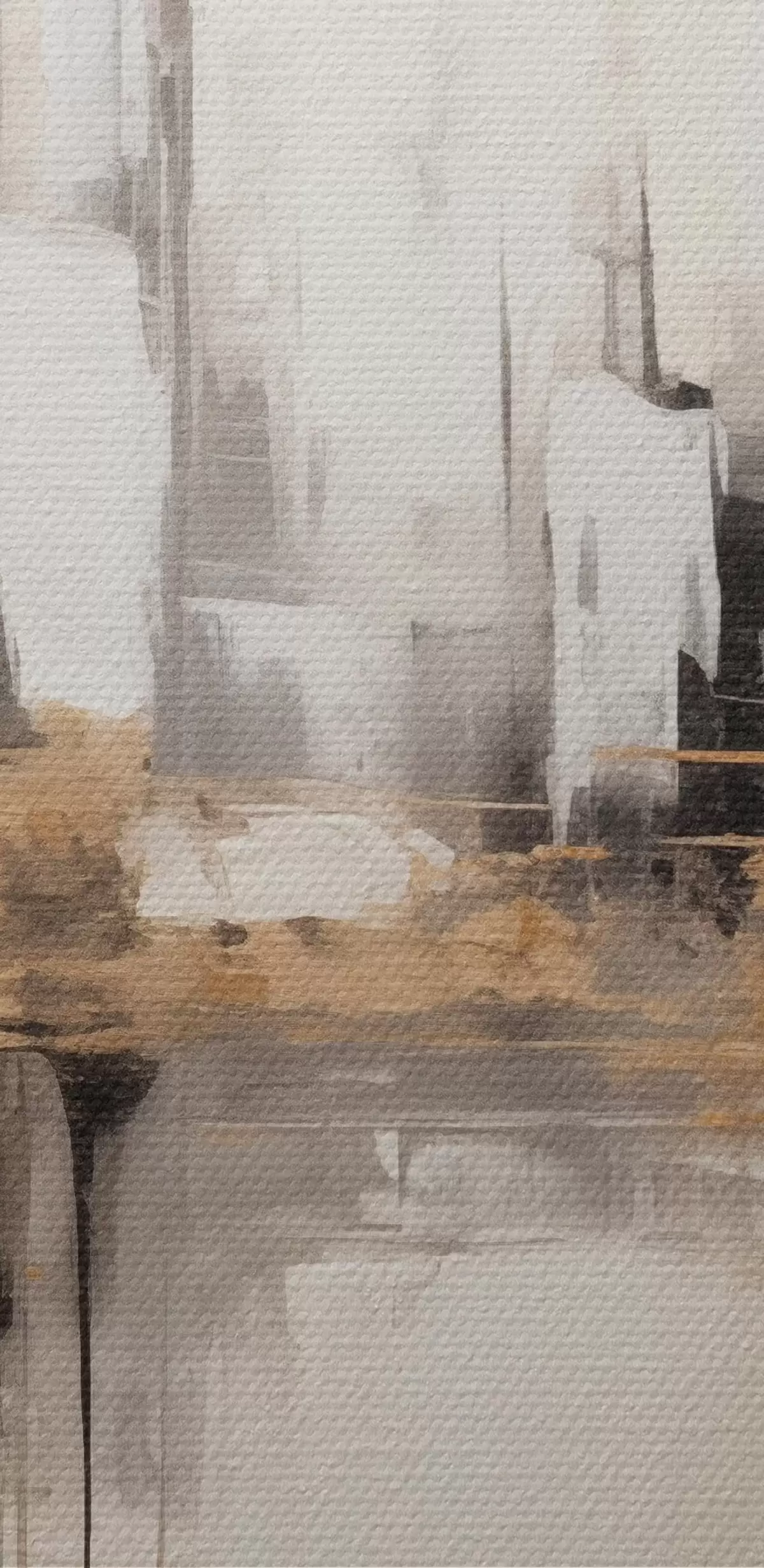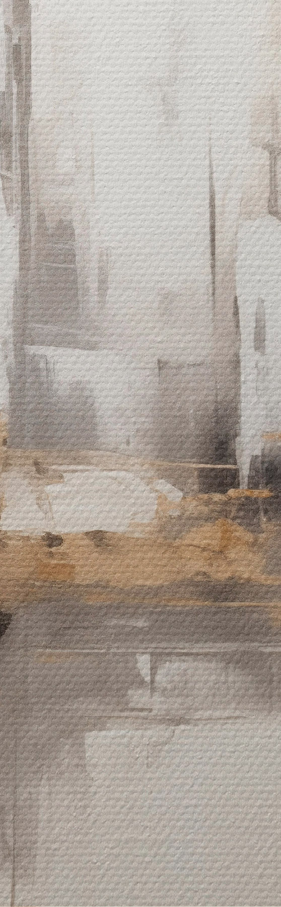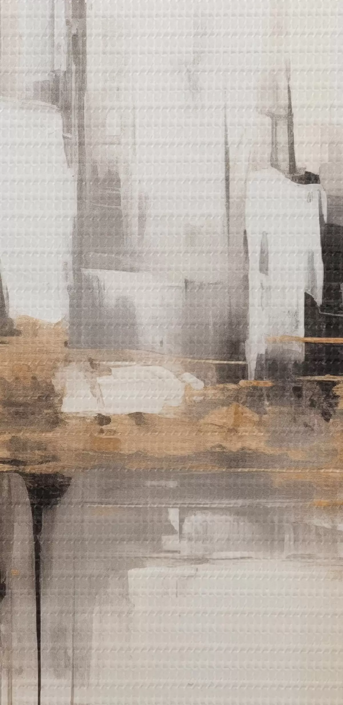 Obraz Abstraktná mestská krajina s odrazmi budov vo vode, vytvorená v neutrálnych tónoch s akcentmi teplých odtieňov. Nr. s42628
