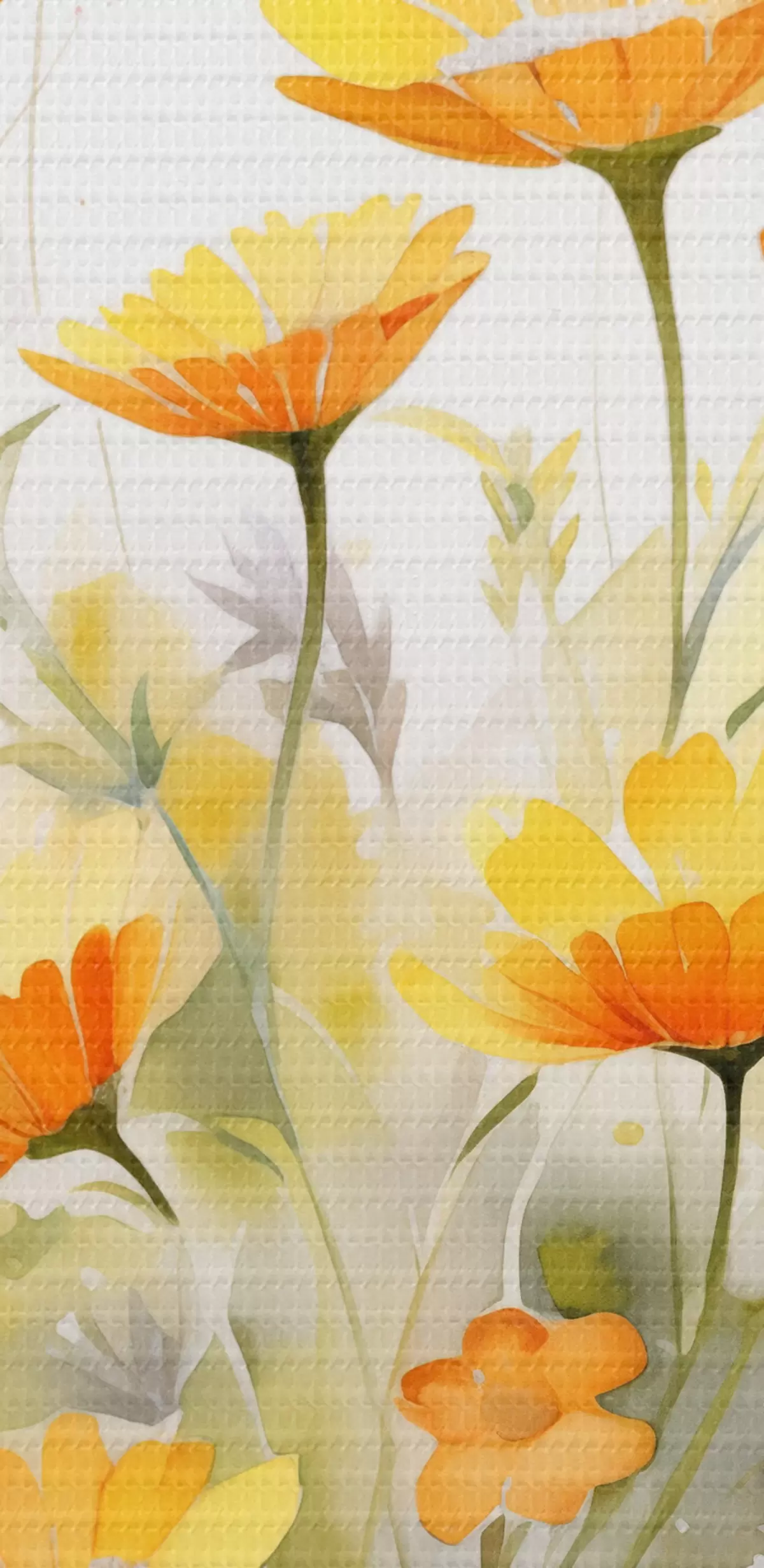 Obraz Žiarivé akvarelové pole kvetov s oranžovými a bielymi sedmokráskami a motýľom poletujúcim v blízkosti Nr. s42714