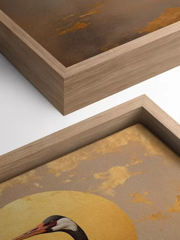 Obraz Žeriav na pozadí zlatého slnka v akrylovej maľbe Nr. s42773