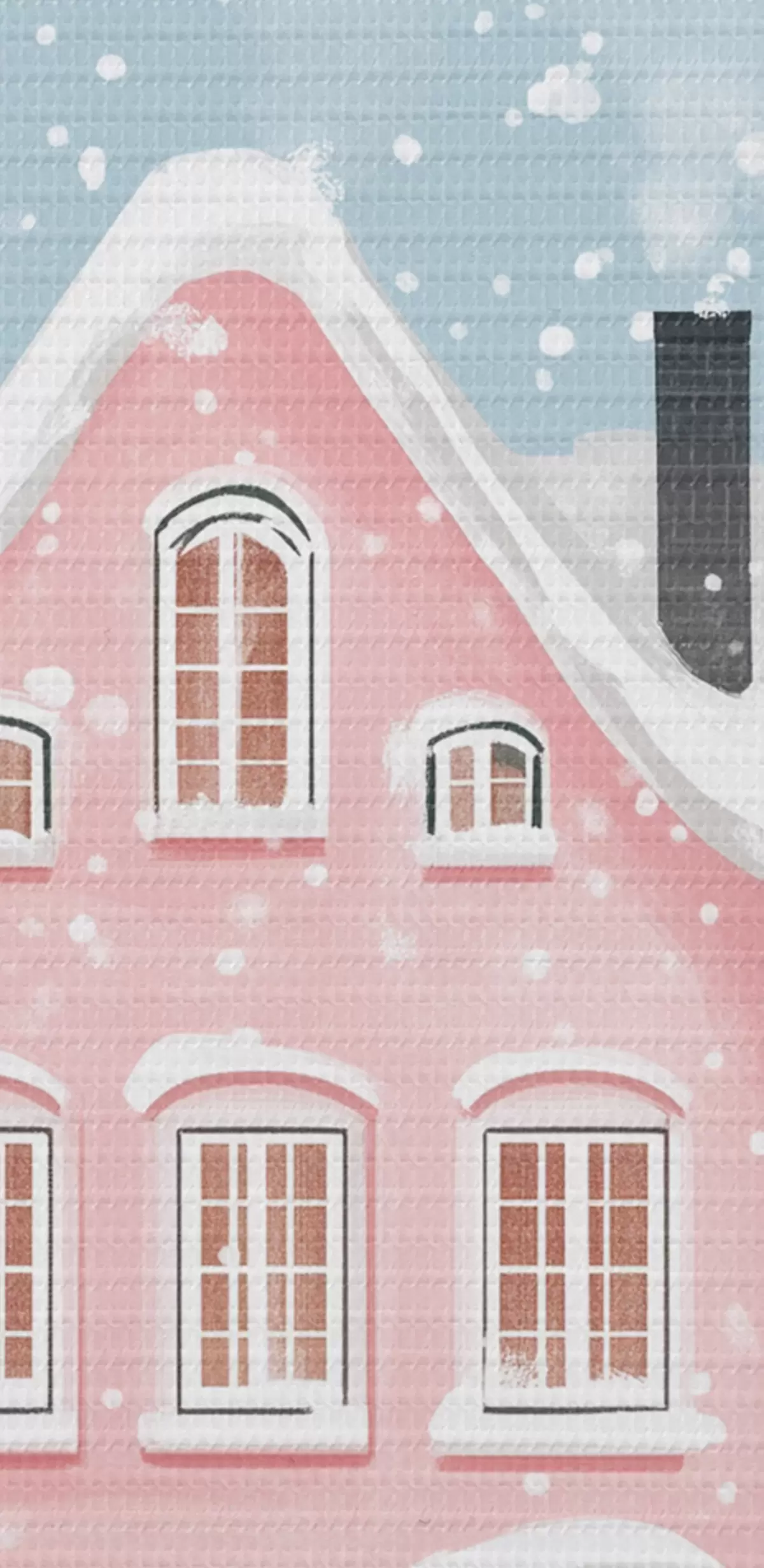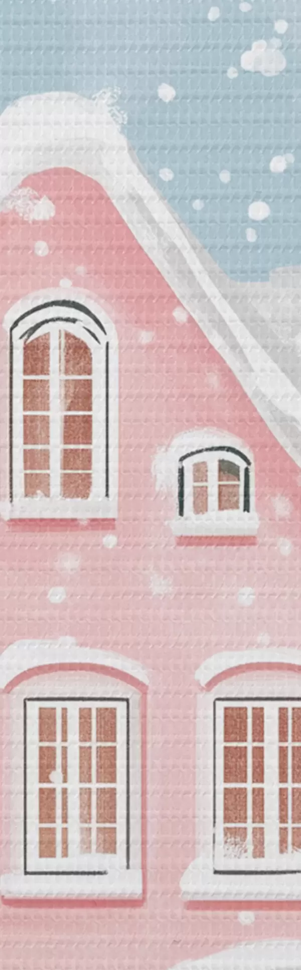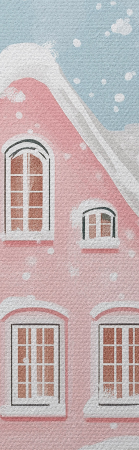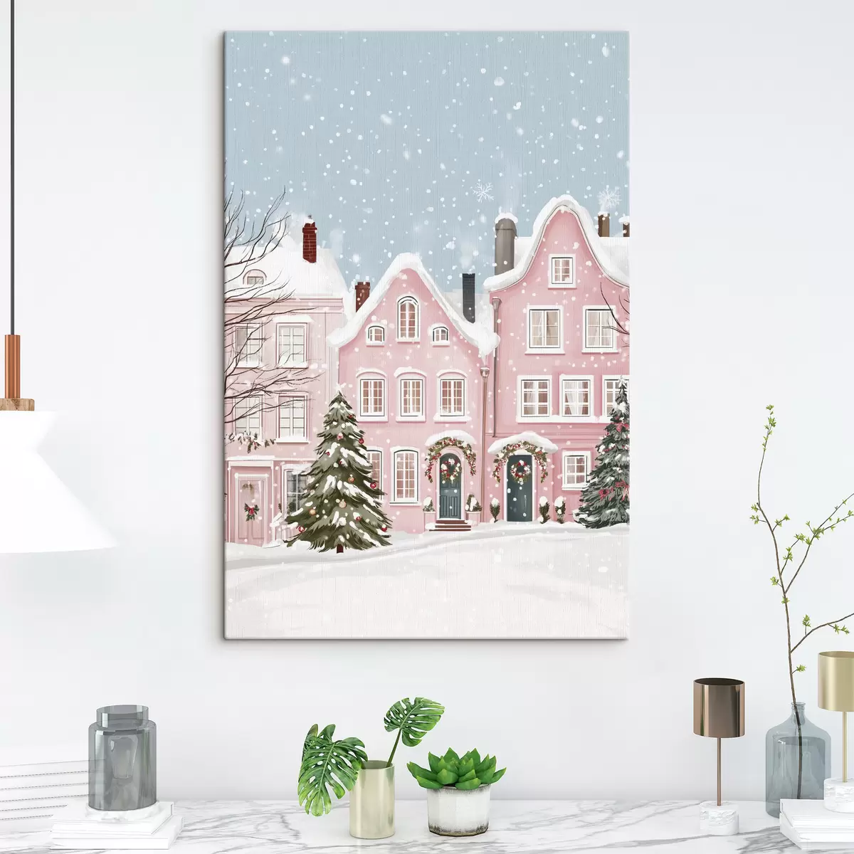 Obraz Krásne mesto s roztomilými ružovými domčekmi, zimnou estetikou, snehovými vločkami Nr. s42793