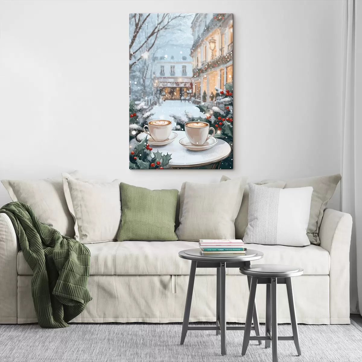 Obraz Šálky kávy v útulnej kaviarni, zimná estetika, boho štýl Nr. s42797