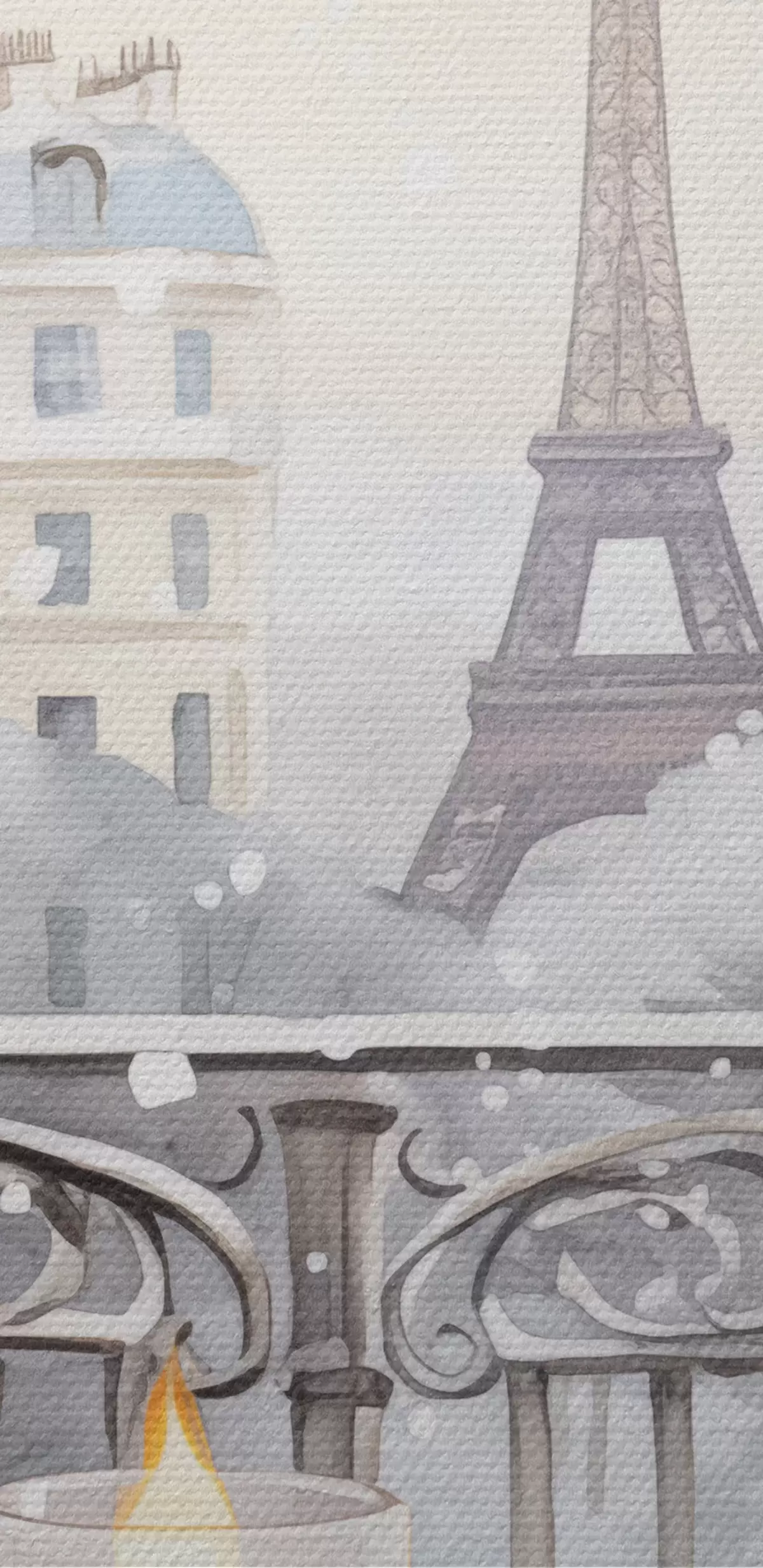 Obraz Krásna kaviareň v Paríži, čajové šálky, romantický pohľad, zima, akvarel Nr. s42799