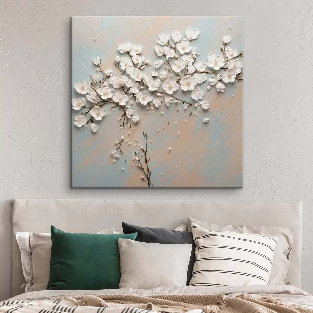 Obraz Biele malé kvety v štýle akrylovej maľby Nr. s42921