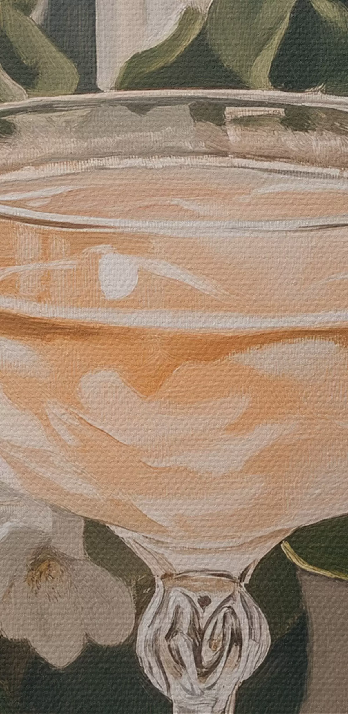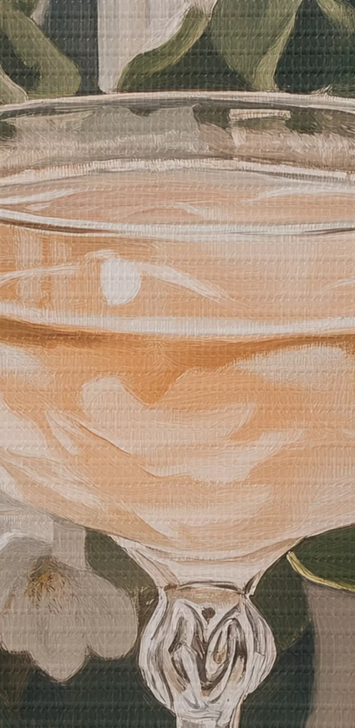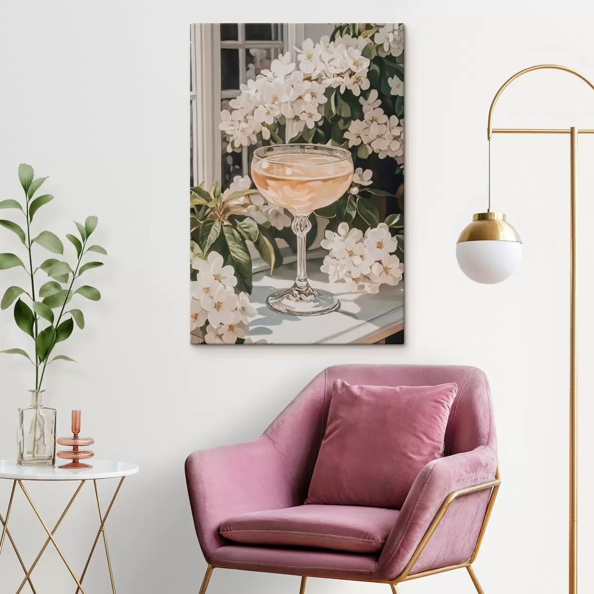 Obraz Pohár šampanského, vinobranie, akvarelový štýl, biele kvety Nr. s43051