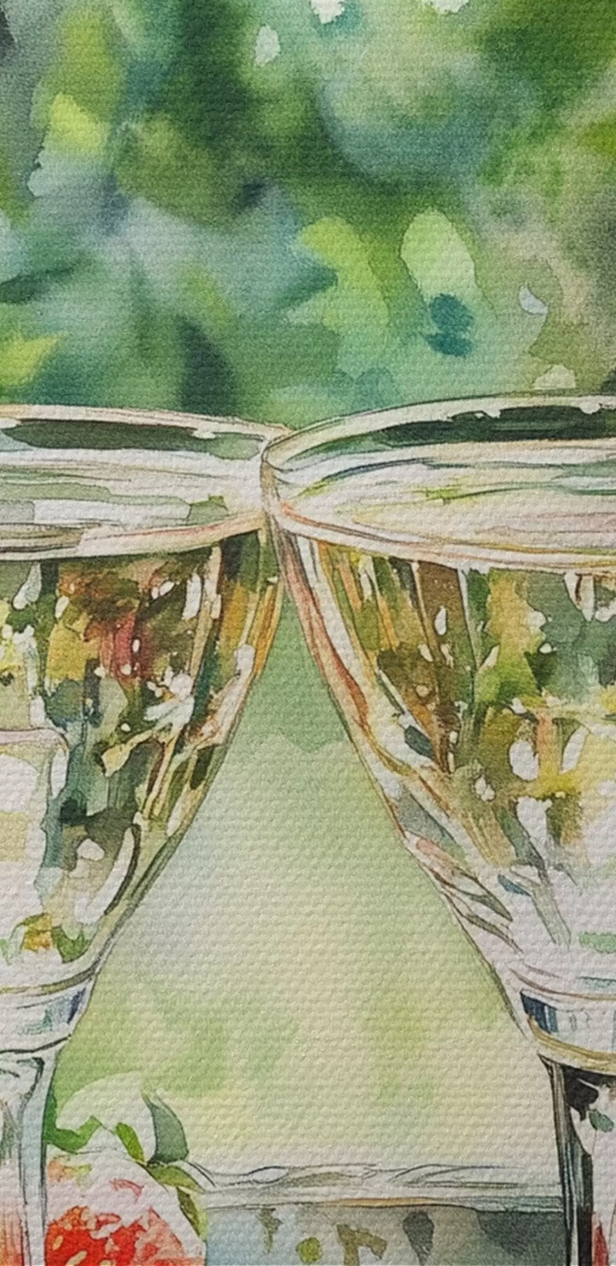 Obraz Letný piknik so šampanským a jahodami, akvarelová kresba Nr. s43055