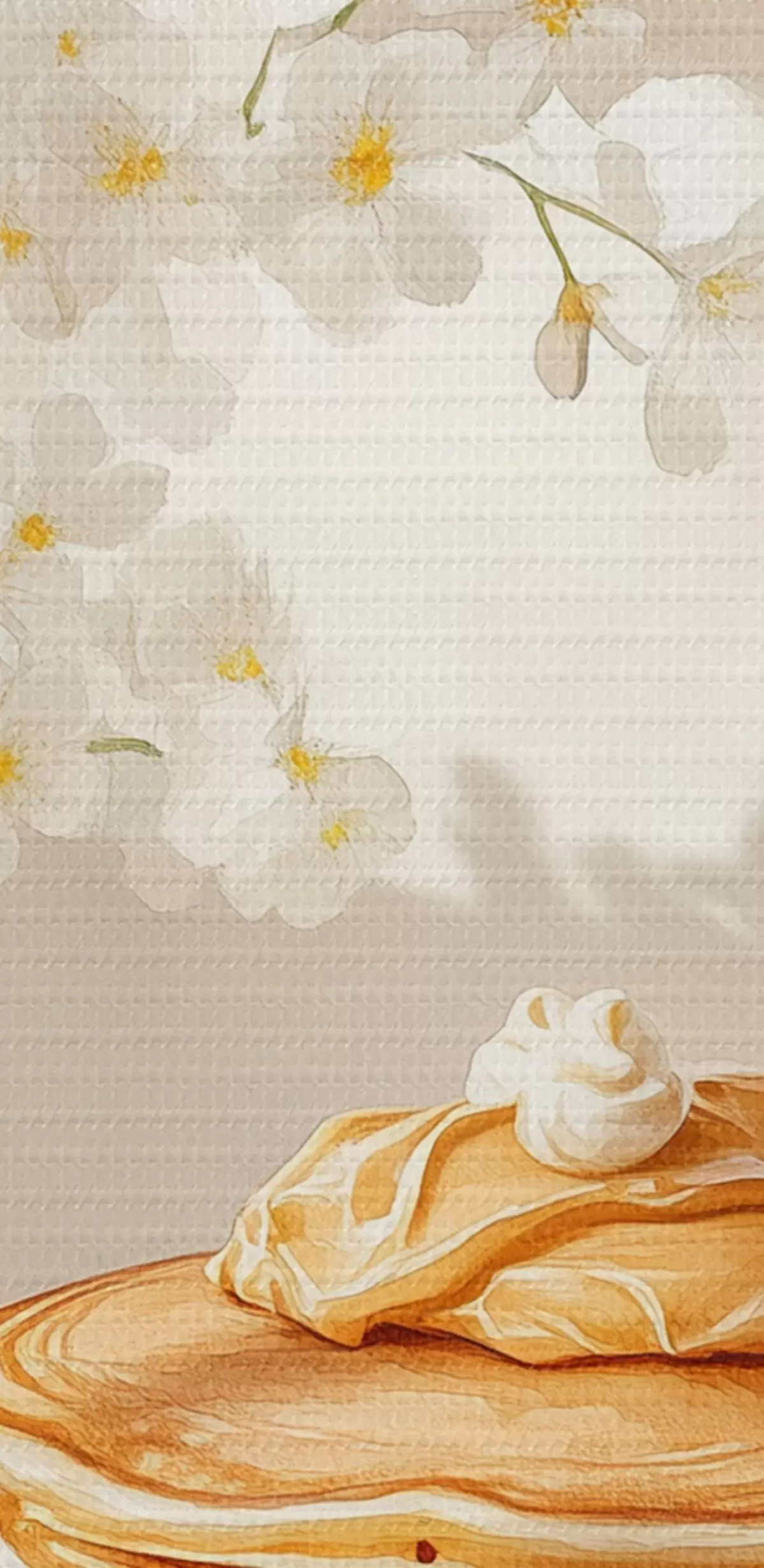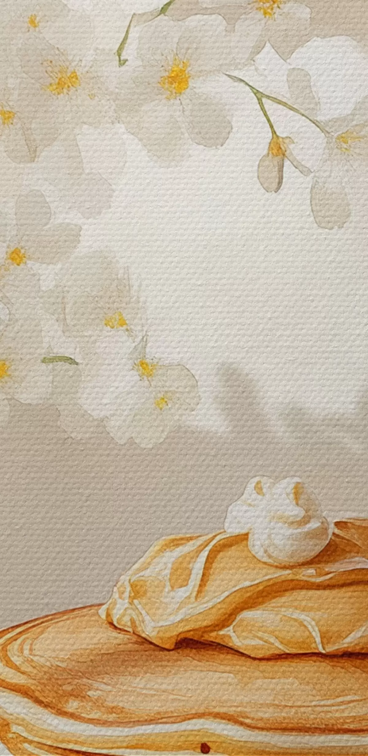 Obraz Lahodné palacinky s arašidovým maslom, akvarelový štýl, váza s bielymi kvetmi Nr. s43063