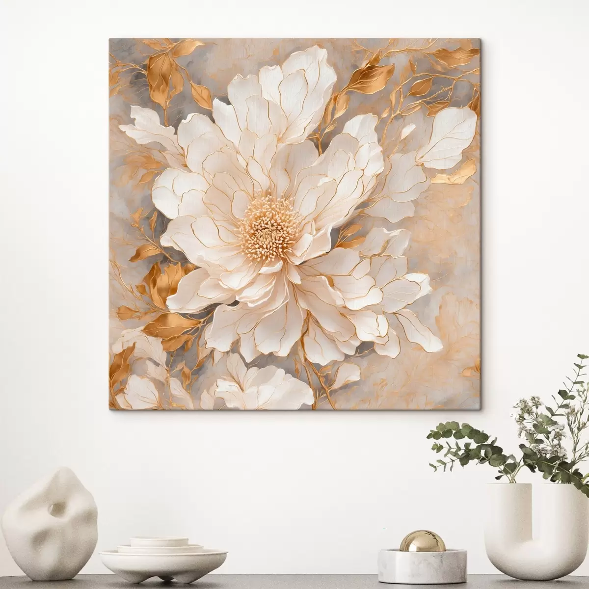 Obraz Biely kvet s listami v akrylovej maľbe Nr. s43115