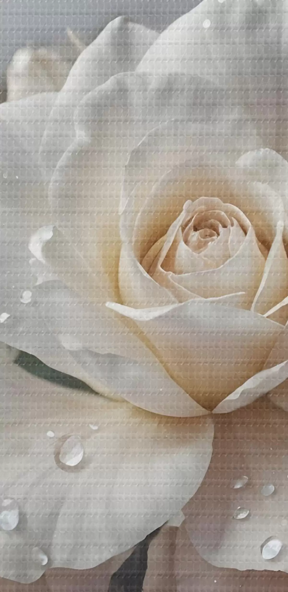 Obraz Skupina bielych ruží s kvapkami vody na okvetných lístkoch, zelené listy, tlmené pozadie, mäkké svetlo Nr. s43163
