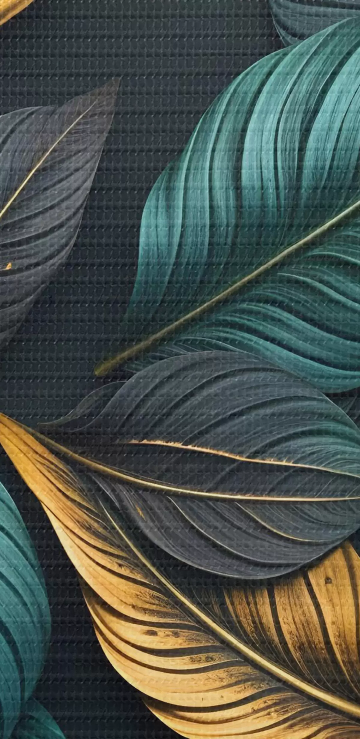Obraz Tmavozelené, žlté a čierne listy s tmavými žilkami, na tmavom pozadí, elegantná tropická atmosféra Nr. s43164
