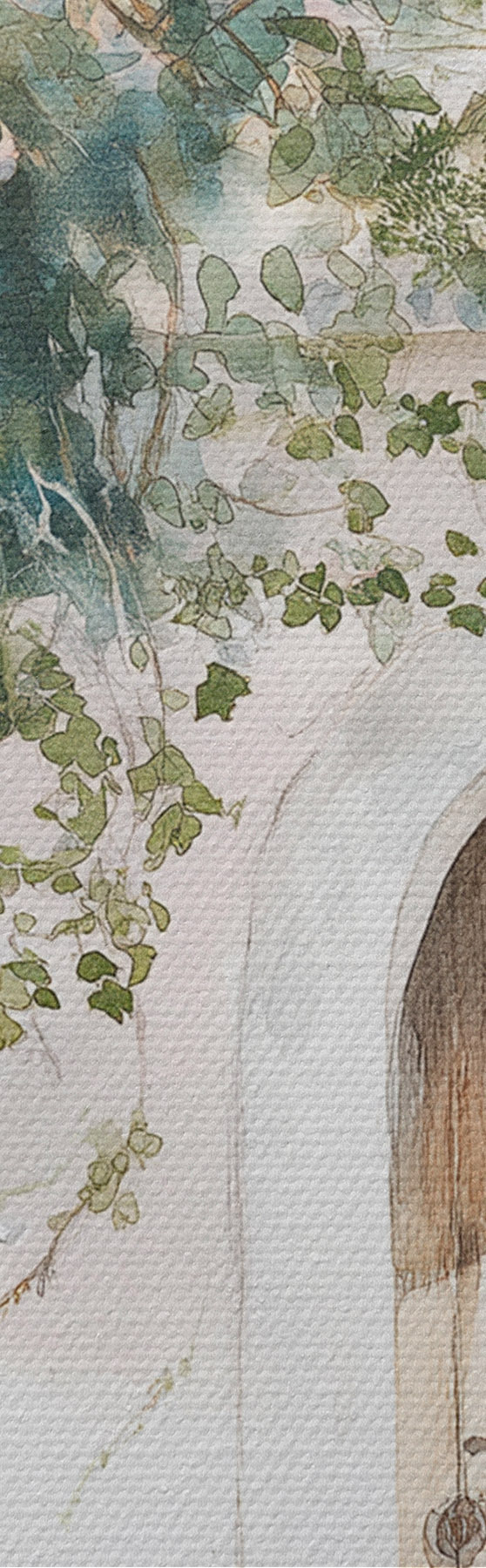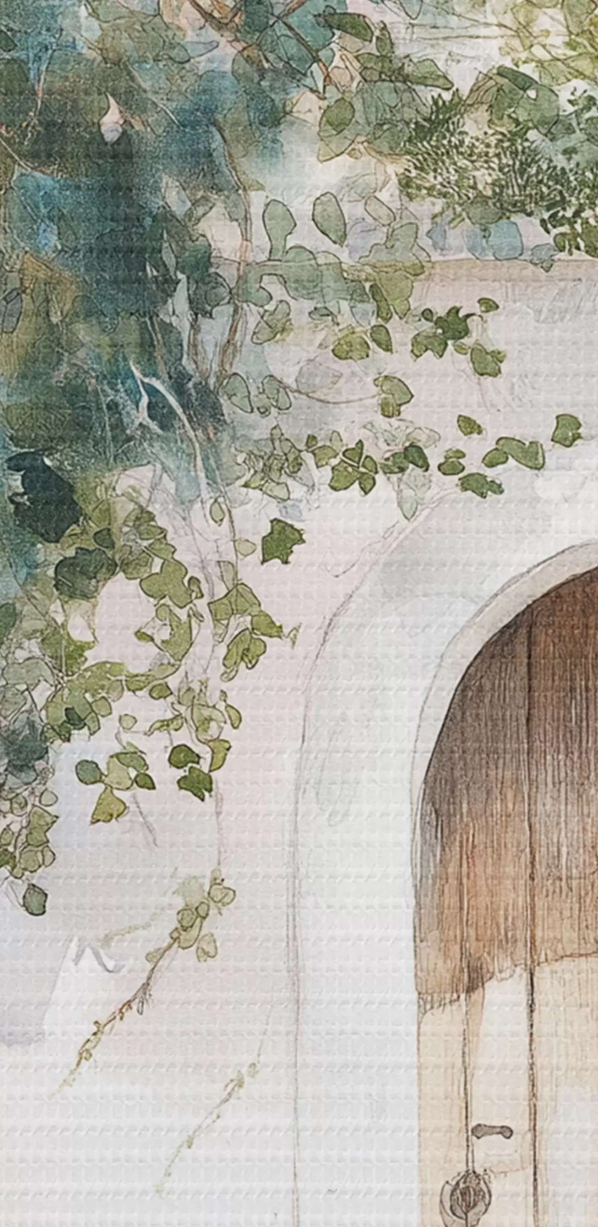 Obraz Krásny biely dom s kvitnúcim stromom, stredomorský, akvarelový štýl Nr. s43179