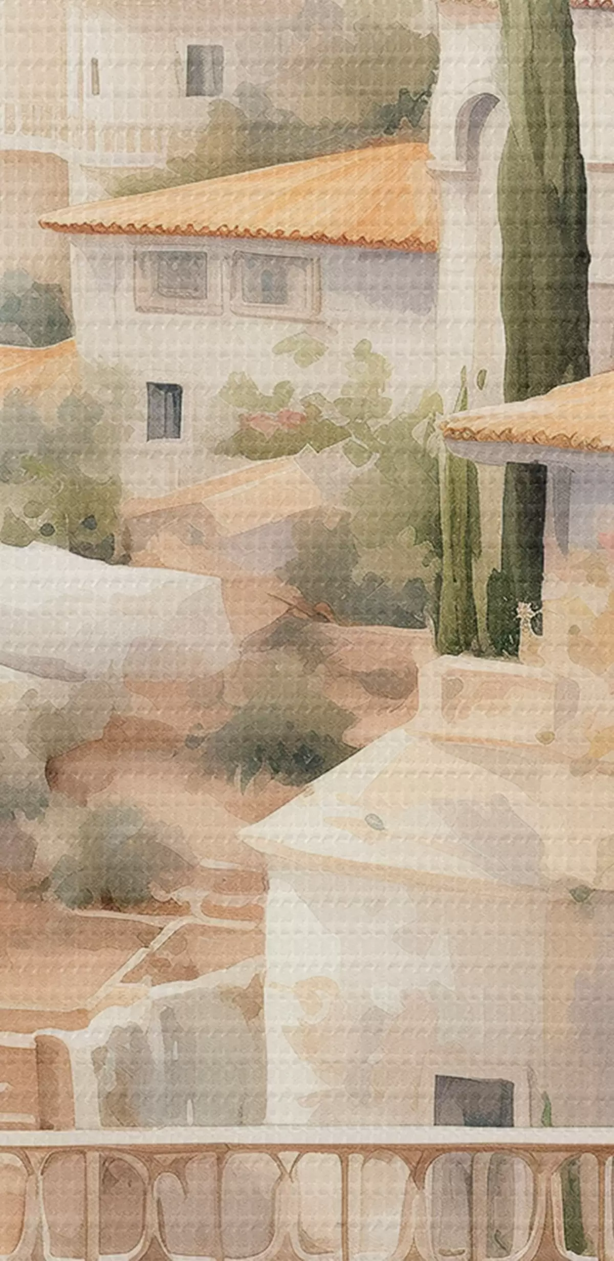 Obraz Španielsko letná krajina, stredomorská architektúra, akvarel Nr. s43181