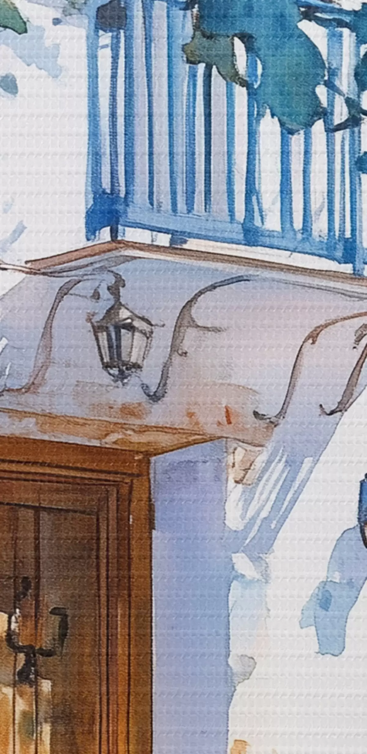 Obraz Akvarel, grécky dom, kvitnúci strom, architektúra Nr. s43182