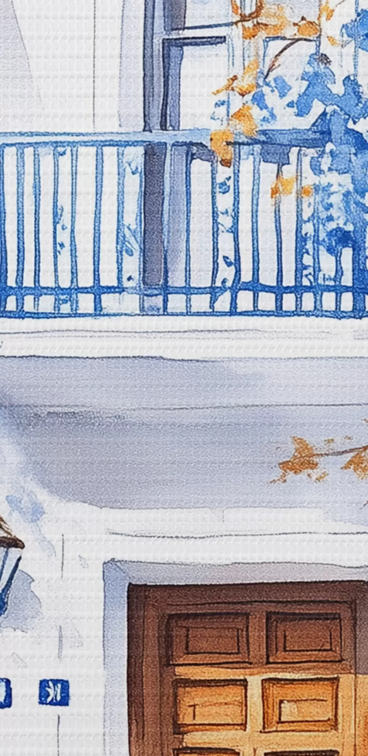 Obraz Kvitnúci strom s modrými kvetmi, biely dom, Grécko, akvarel Nr. s43183