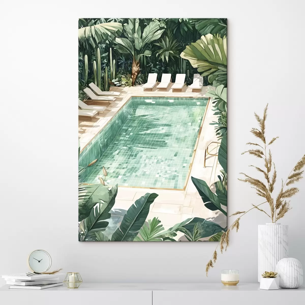 Obraz Letný bazén v zelenej záhrade, vintage štýl, akvarel Nr. s43189