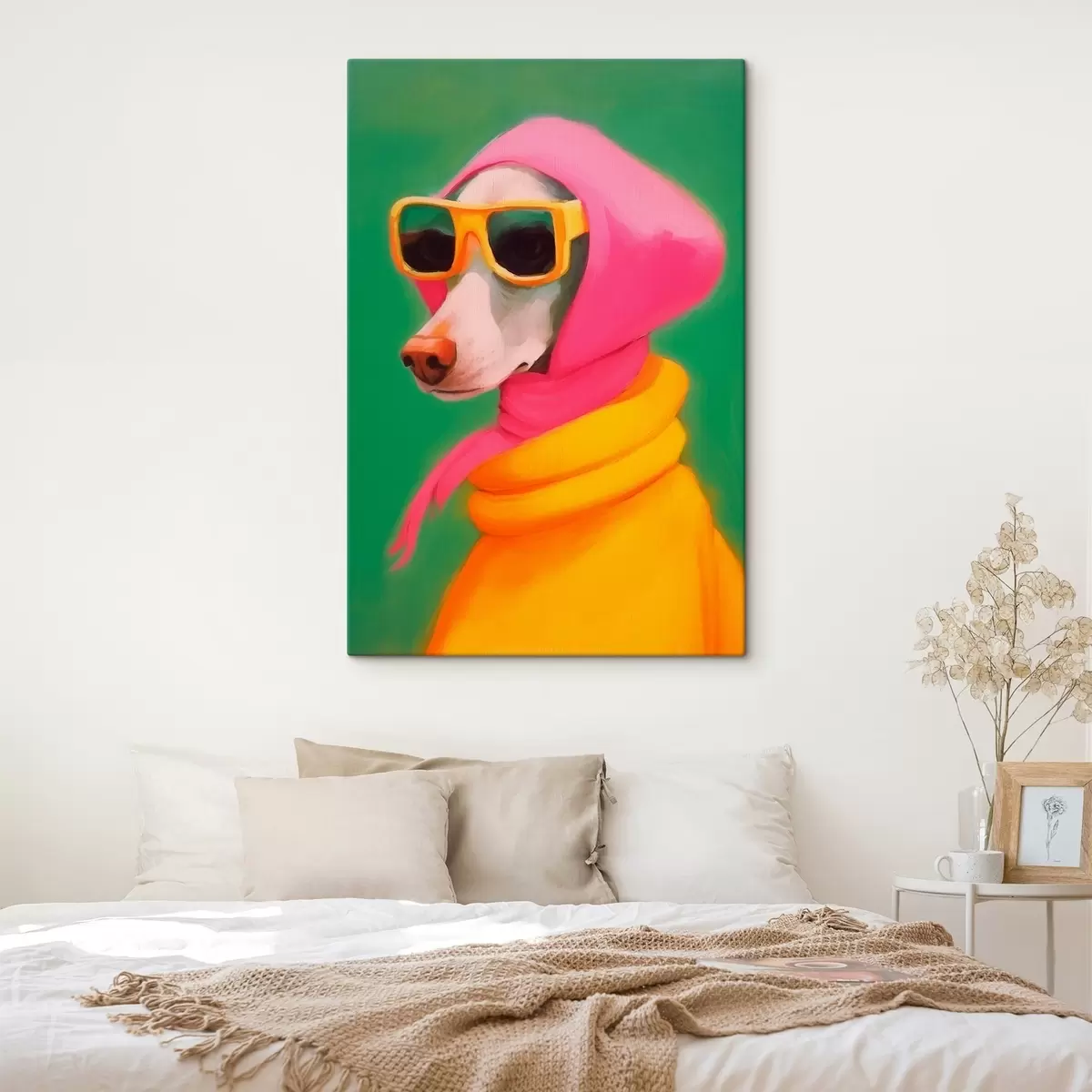 Obraz Štýlový pes v jasnom oblečení Nr. s43265