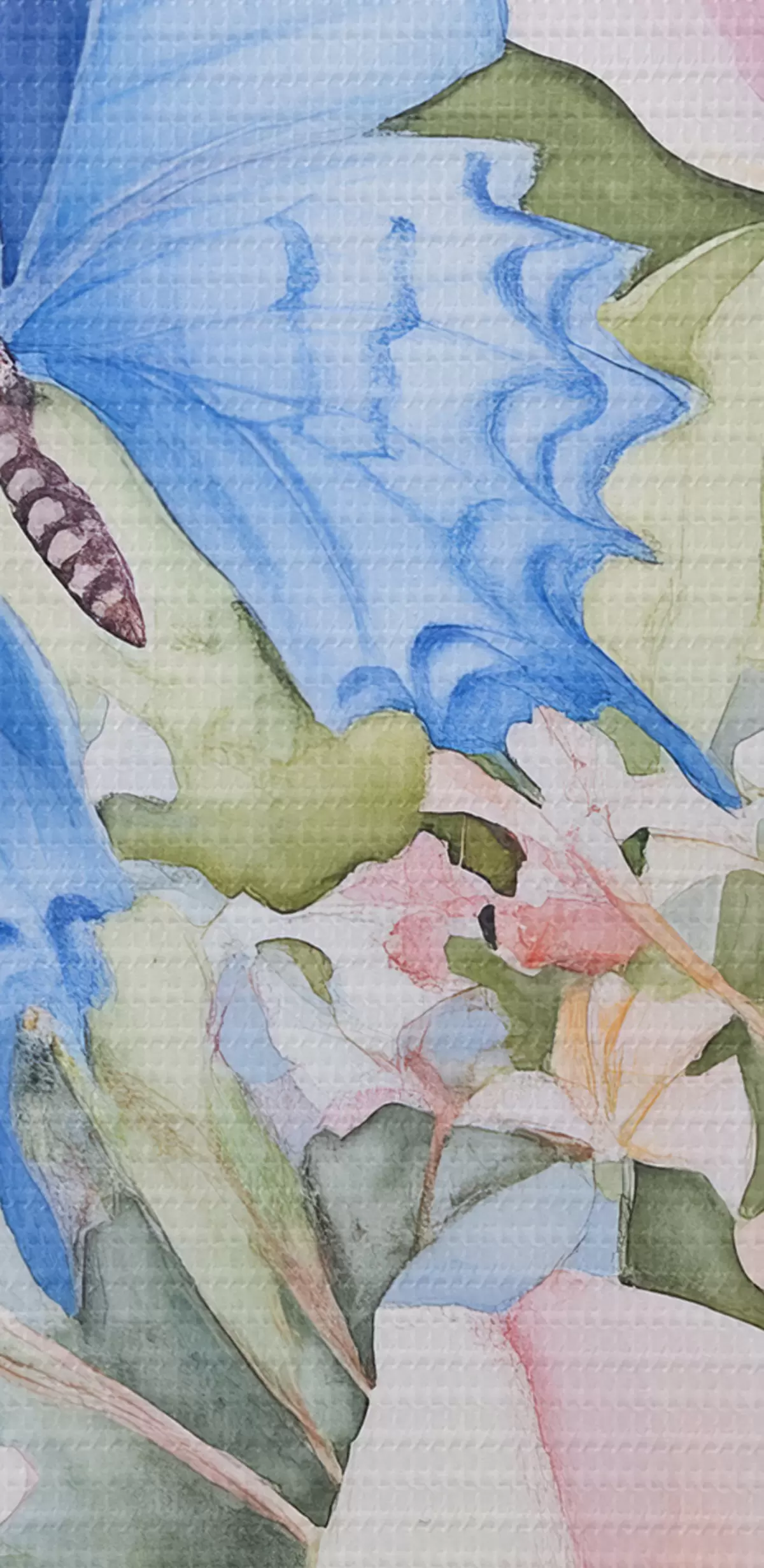 Obraz Modrý motýľ a ružové kvety Nr. s43296