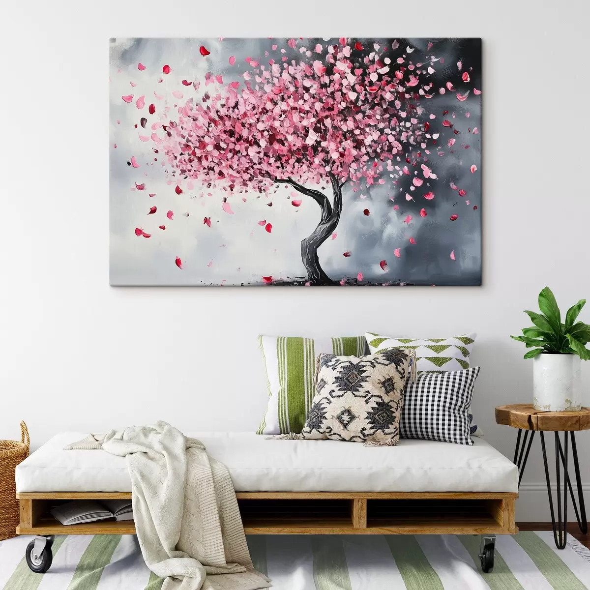 Obraz Ružový kvitnúci strom na sivom pozadí Nr. s43299