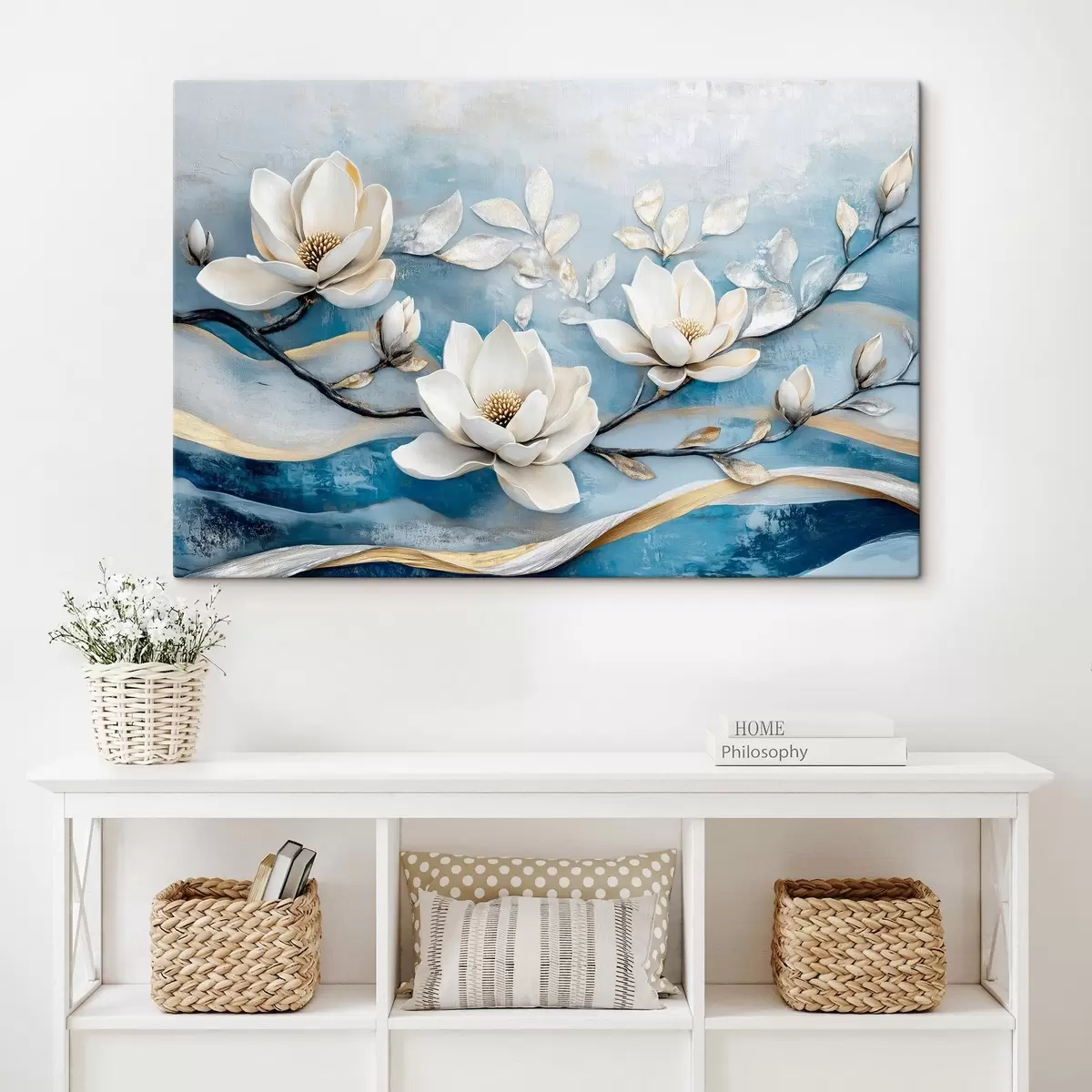 Obraz Vetva magnólie na abstraktnom modro-žltom pozadí Nr. s43323