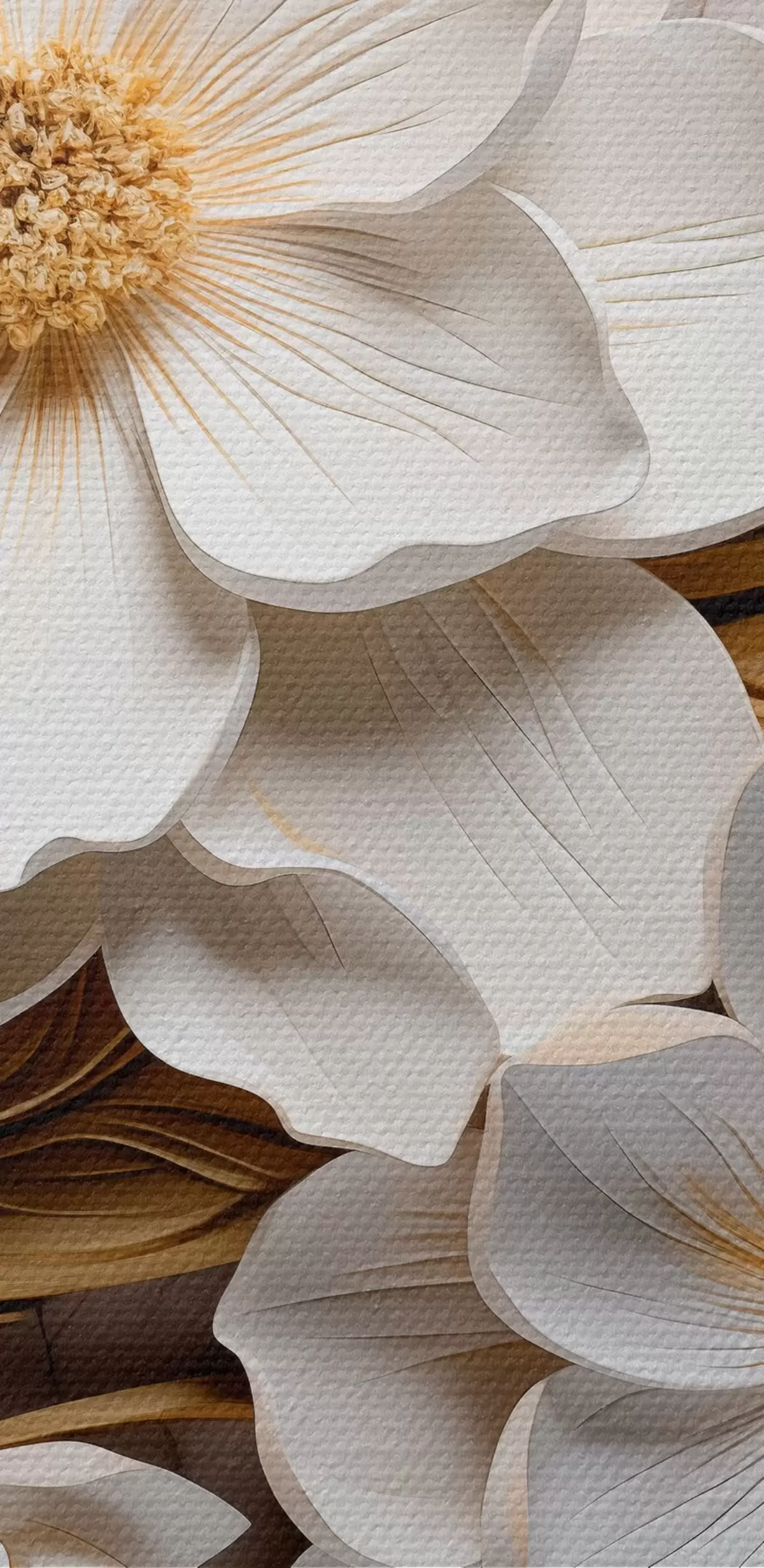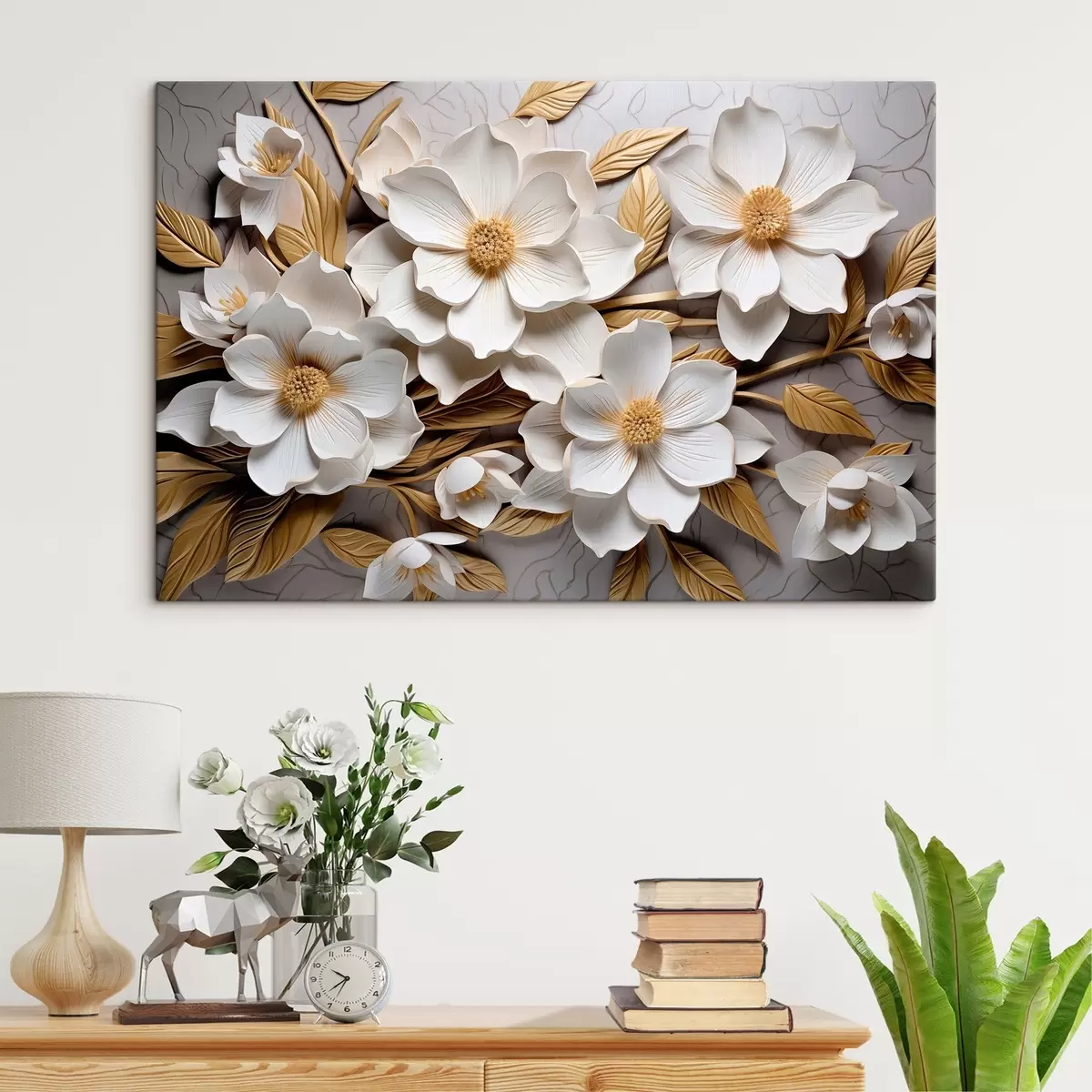 Obraz Biele kvety v štýle reliéfnej fresky so žltými listami a tyčinkami Nr. s43330