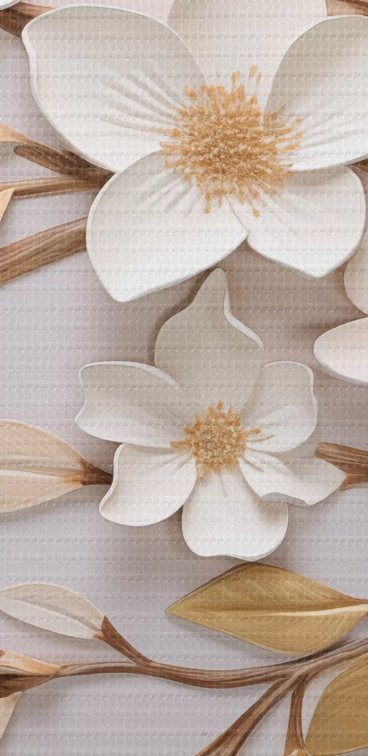Obraz Biele kvety v štýle reliéfnej fresky so žltými akcentmi Nr. s43331