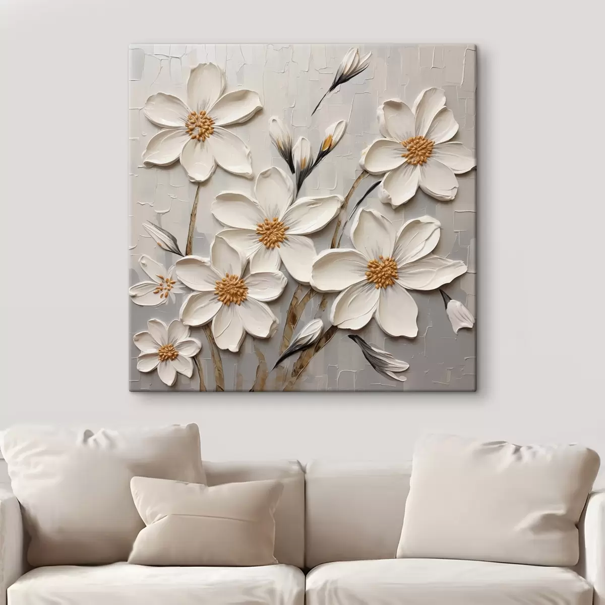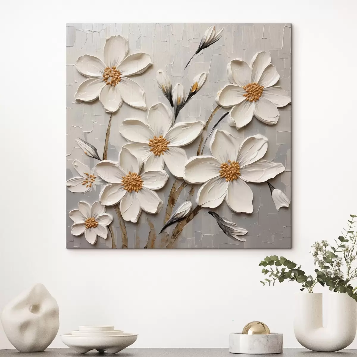 Obraz Biele objemné kvety v štýle maľby s veľkými ťahmi štetca Nr. s43366