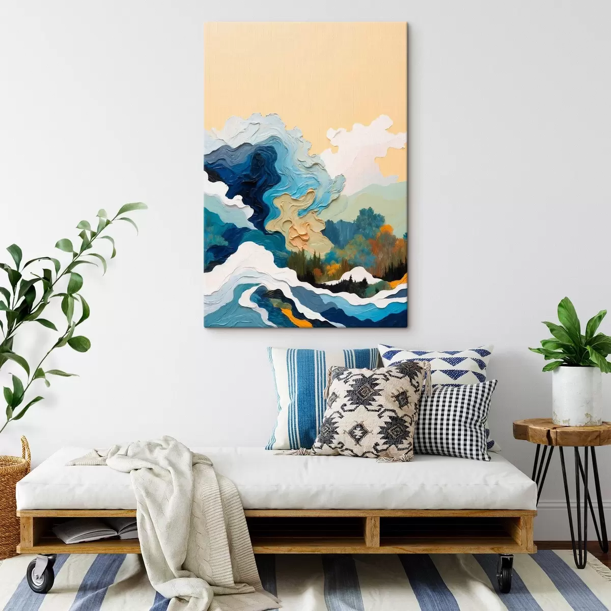 Obraz je možné zavesiť ihneď po jeho prevzatí. Obraz bude napnutý na drevených nosidlách so šírkou 2 cm.