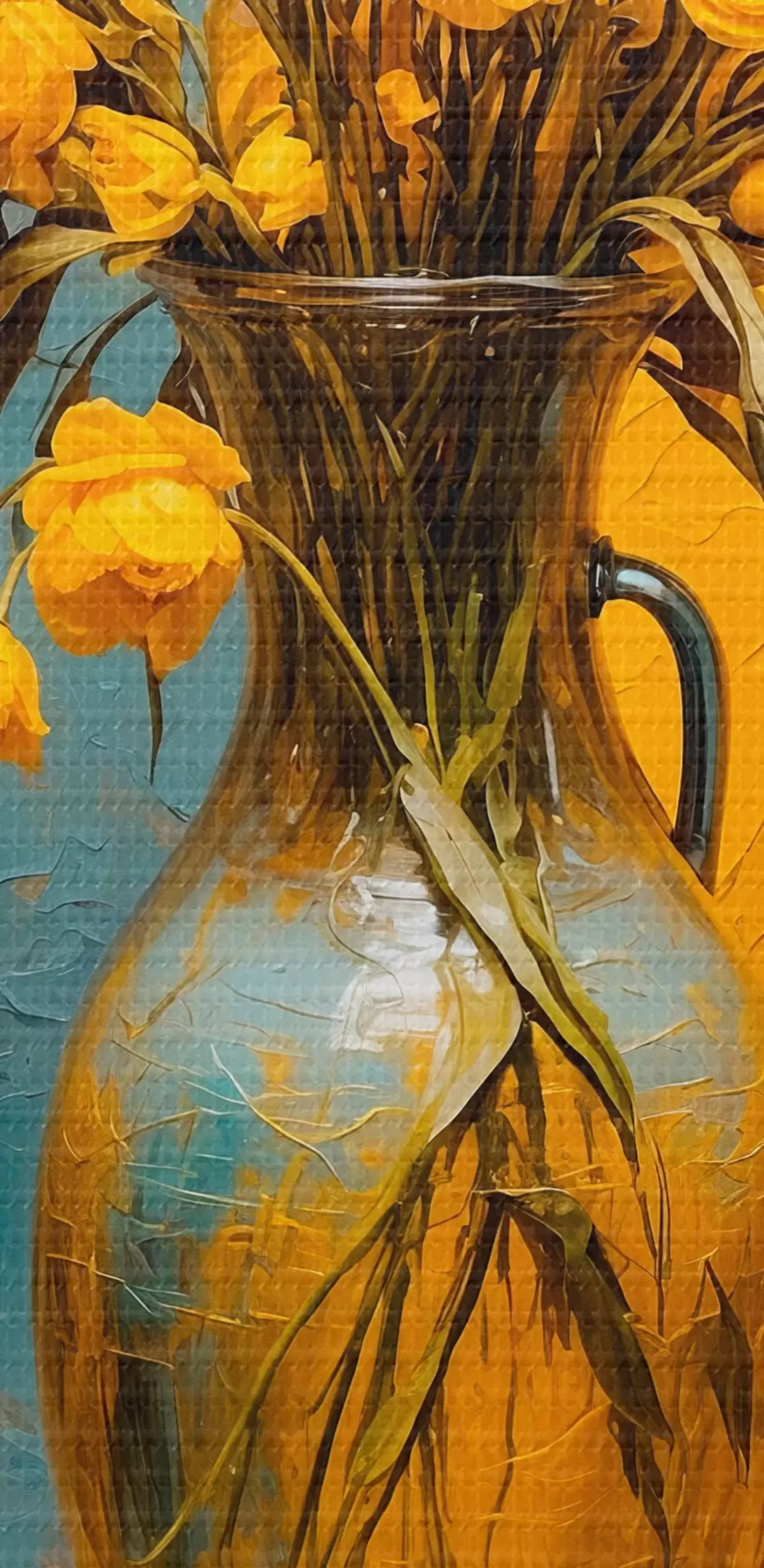 Obraz je možné zavesiť ihneď po jeho prevzatí. Obraz bude napnutý na drevených nosidlách so šírkou 2 cm.