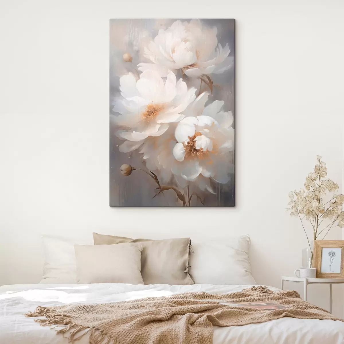 Obraz Biele kvety a stonky na rozmazanom pozadí Nr. s43473