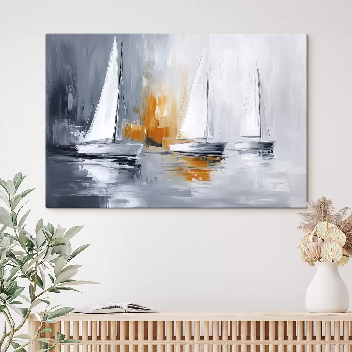Obraz Plachetnice, abstrakcia, akrylová kresba, sivá a oranžová Nr. s43499