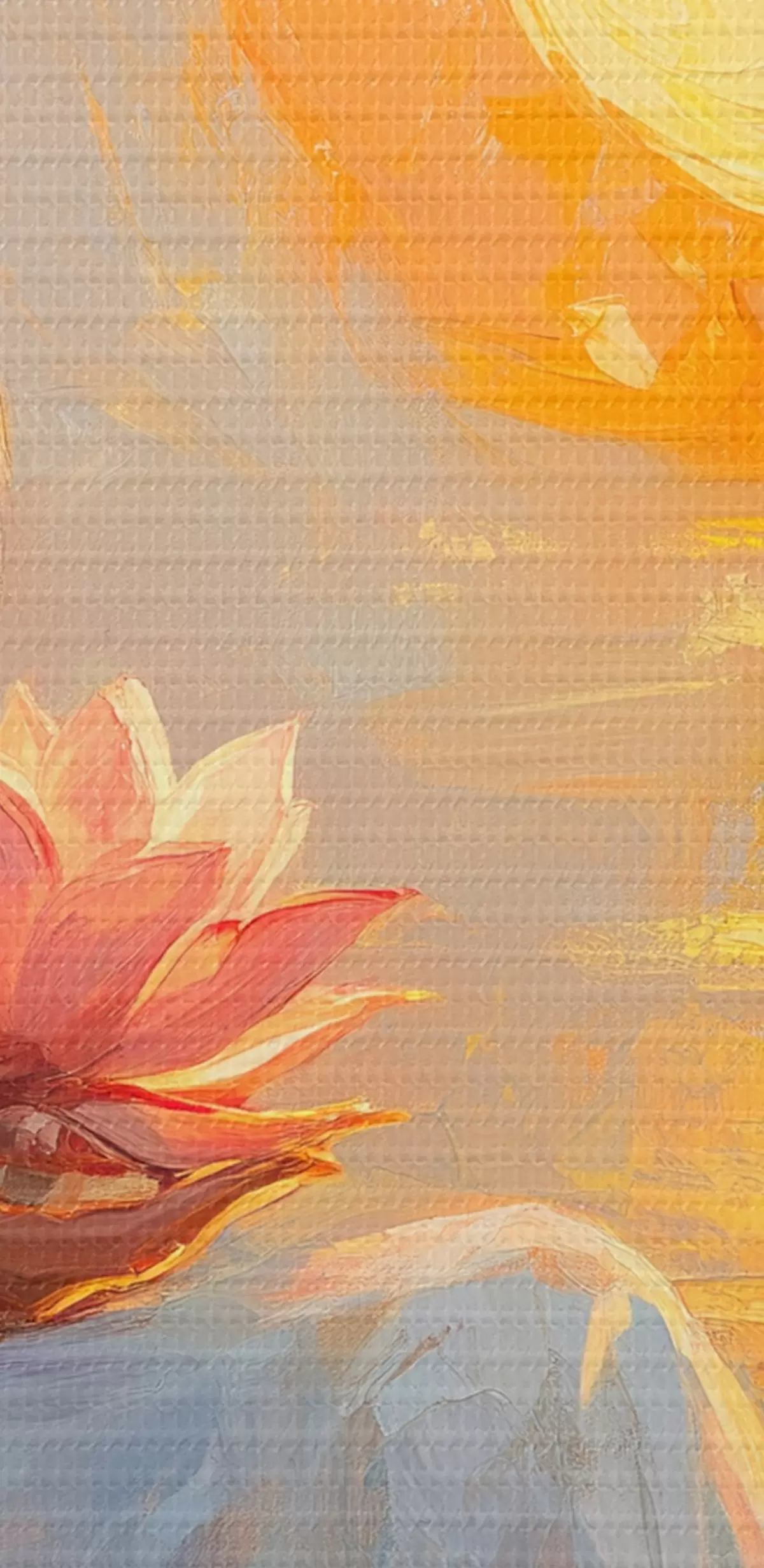 Obraz Žena s lotosovým kvetom na západe slnka, biely vták, olejová kresba Nr. s43501