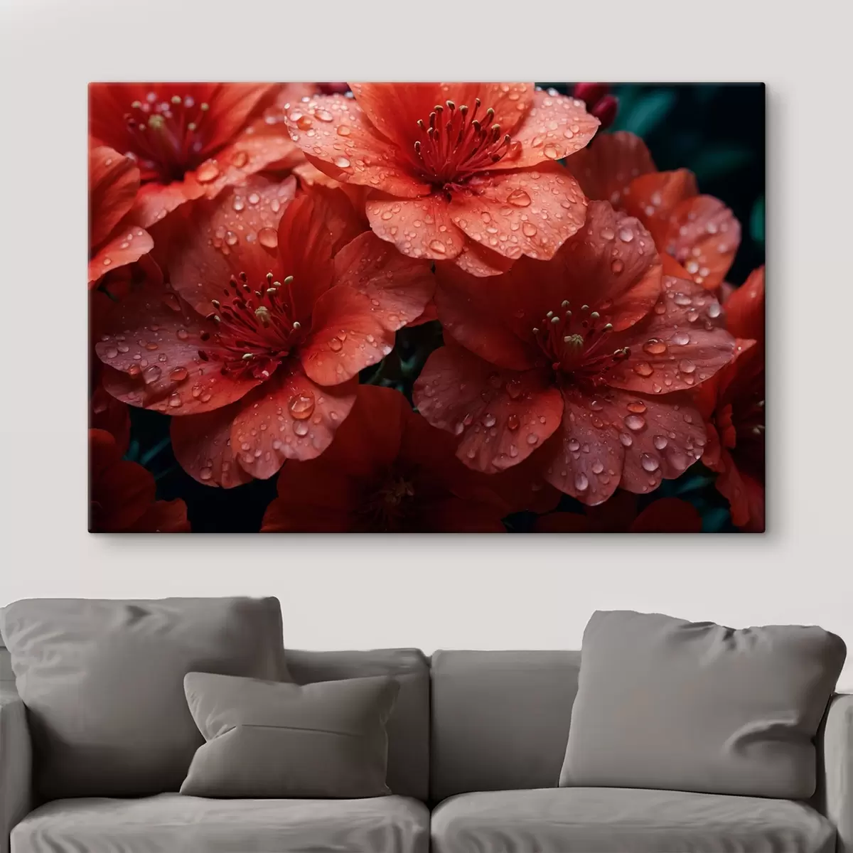 Obraz Červené kvety s kvapkami rosy Nr. s43878