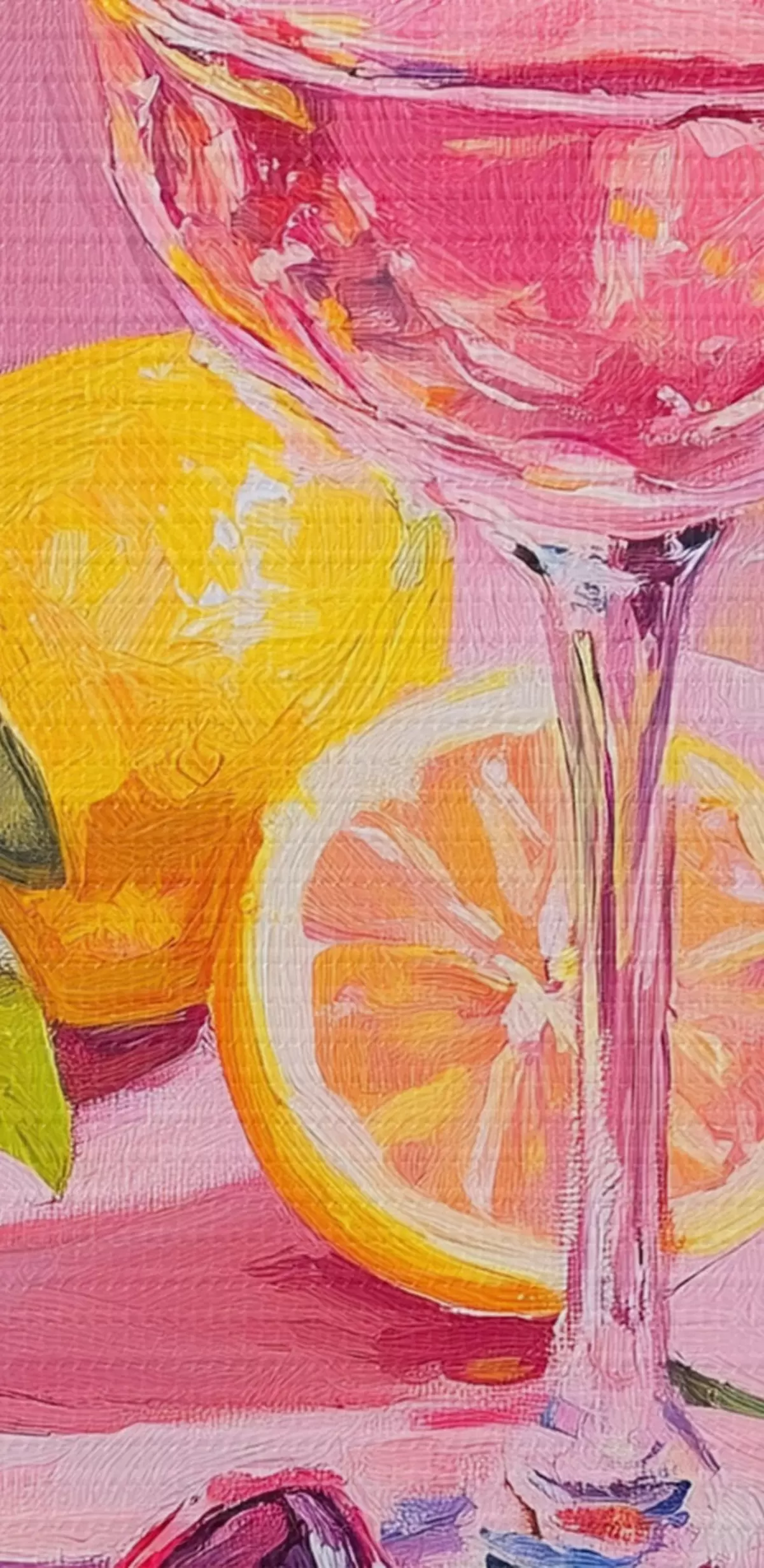 Obraz Pohár vína s citrónmi, slnečné okuliare, abstrakcia, olejová kresba, ružové farby Nr. s43883