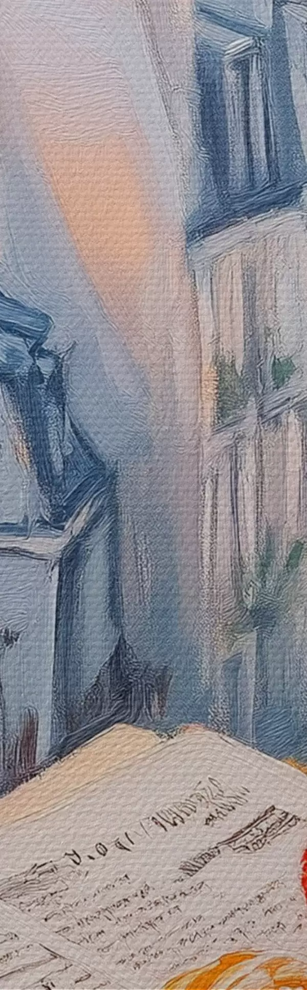 Obraz Východ slnka na balkóne v Paríži, Eiffelova veža, jahody, káva, denník Nr. s43890