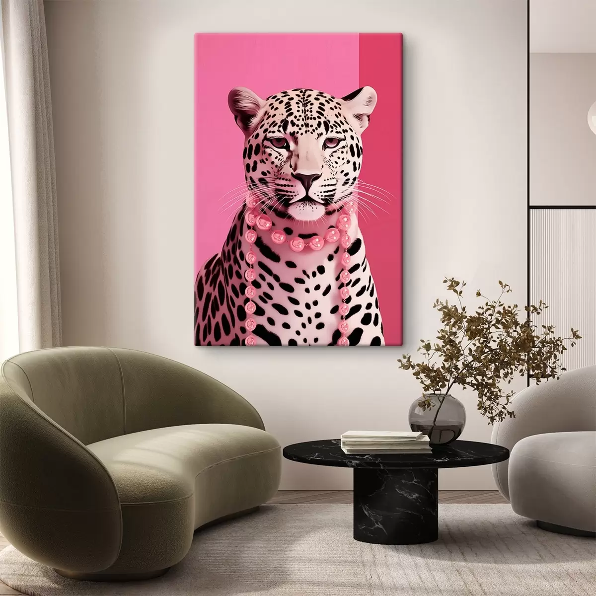 Obraz Portrét leoparda s ružovým náhrdelníkom Nr. s43976