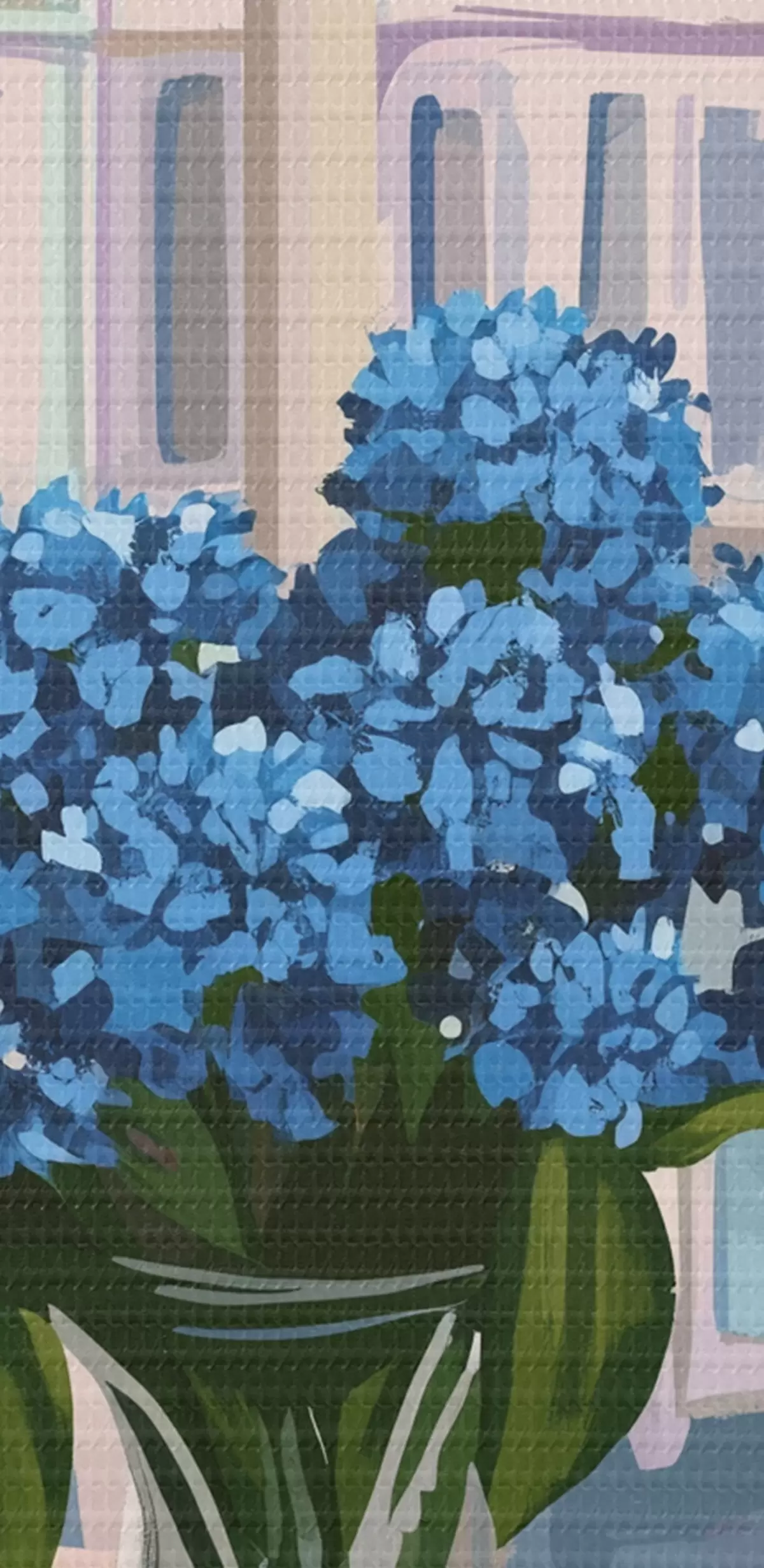 Obraz Hortenzie vo váze, pohľad z okna, sviečka, útulný domov Nr. s44009