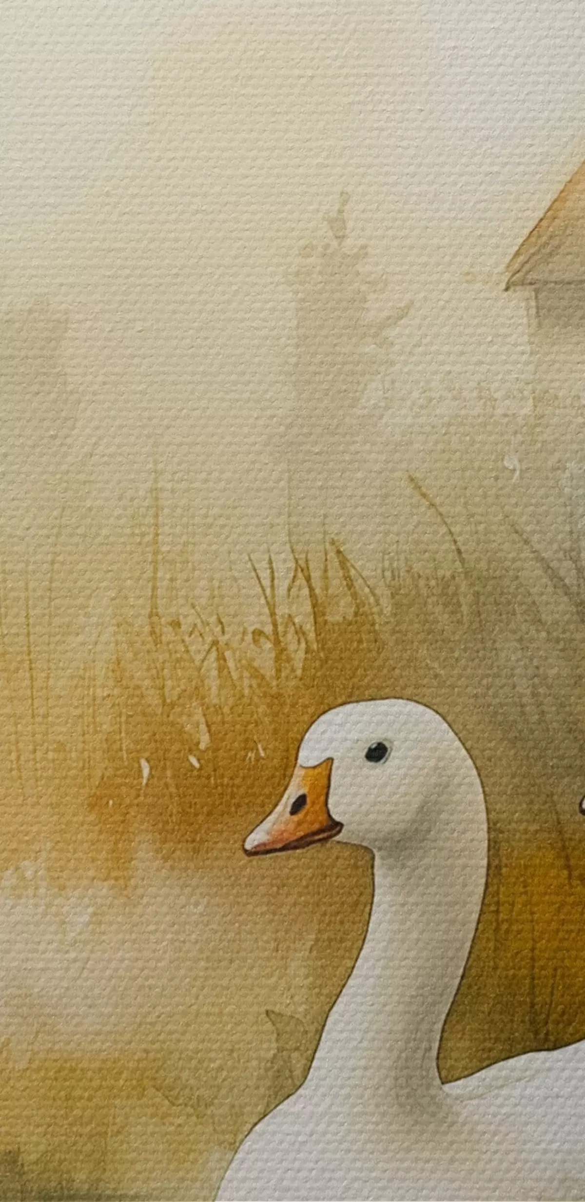 Obraz Husi v jazere v blízkosti farmy, rustikálny, akvarelový štýl Nr. s44022