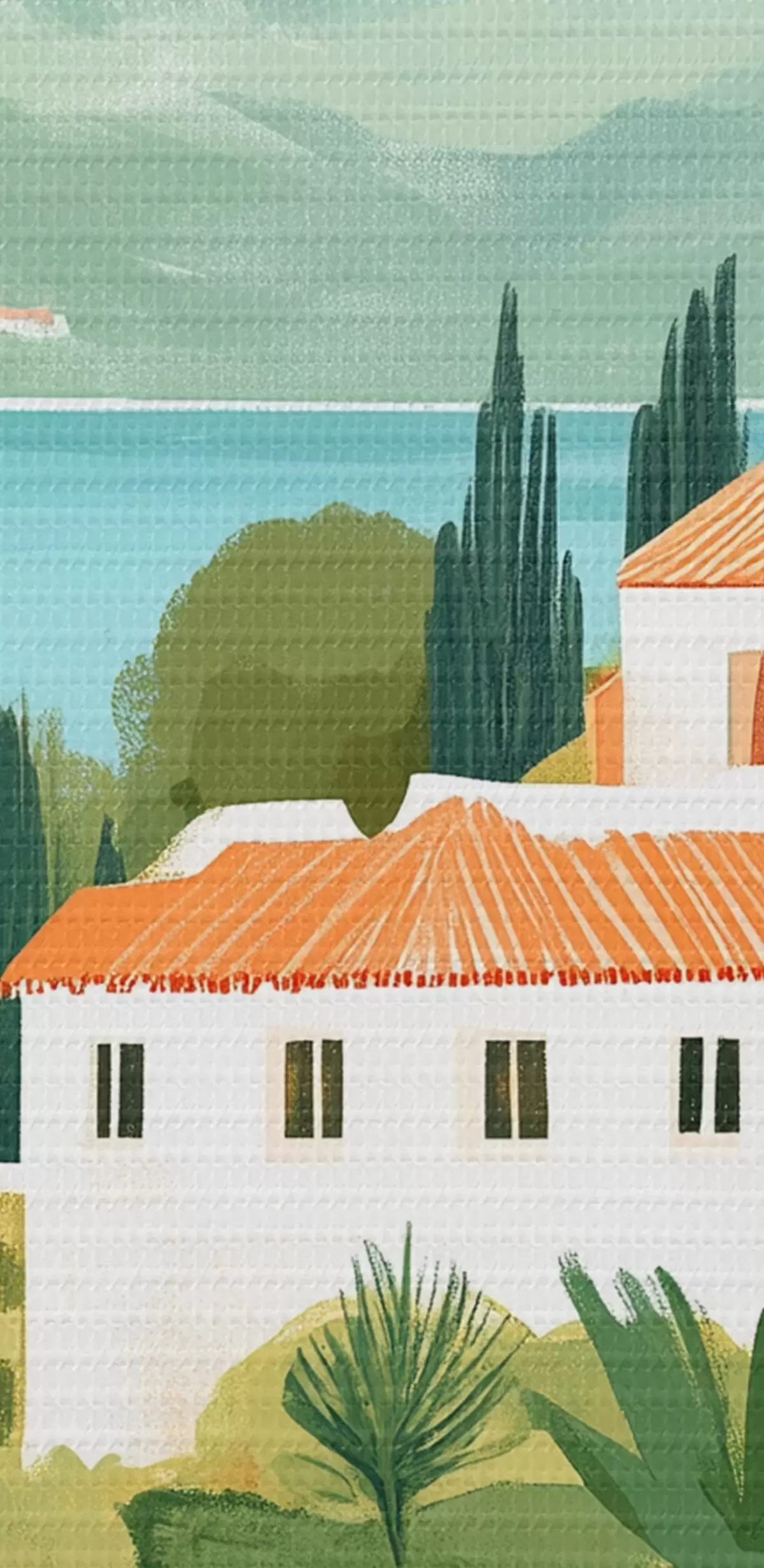 Obraz Stredomorská krajina s pomarančovníkmi a domami, morské pobrežie Nr. s44027
