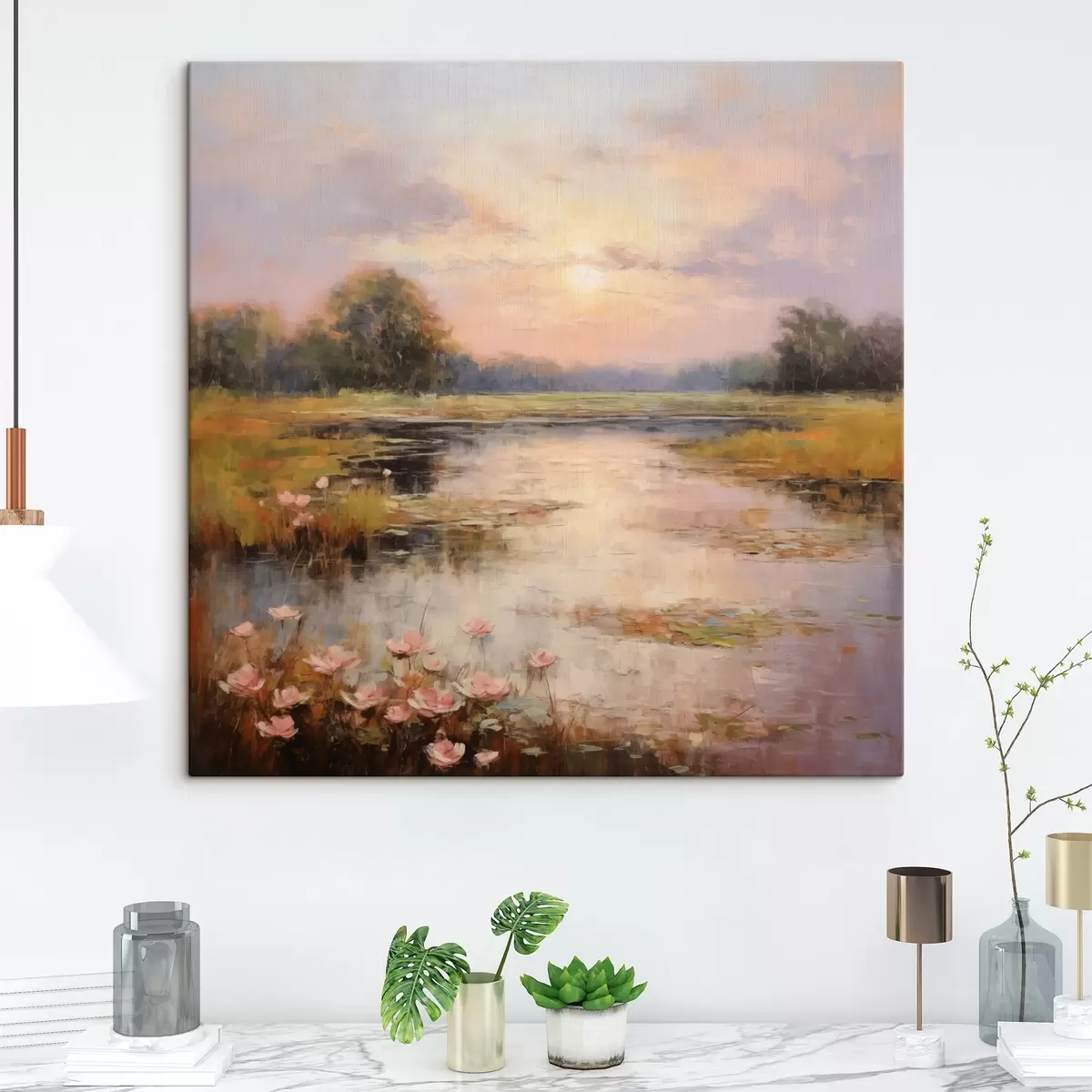 Obraz Vodná plocha s kvetmi pri západe slnka Nr. s44044