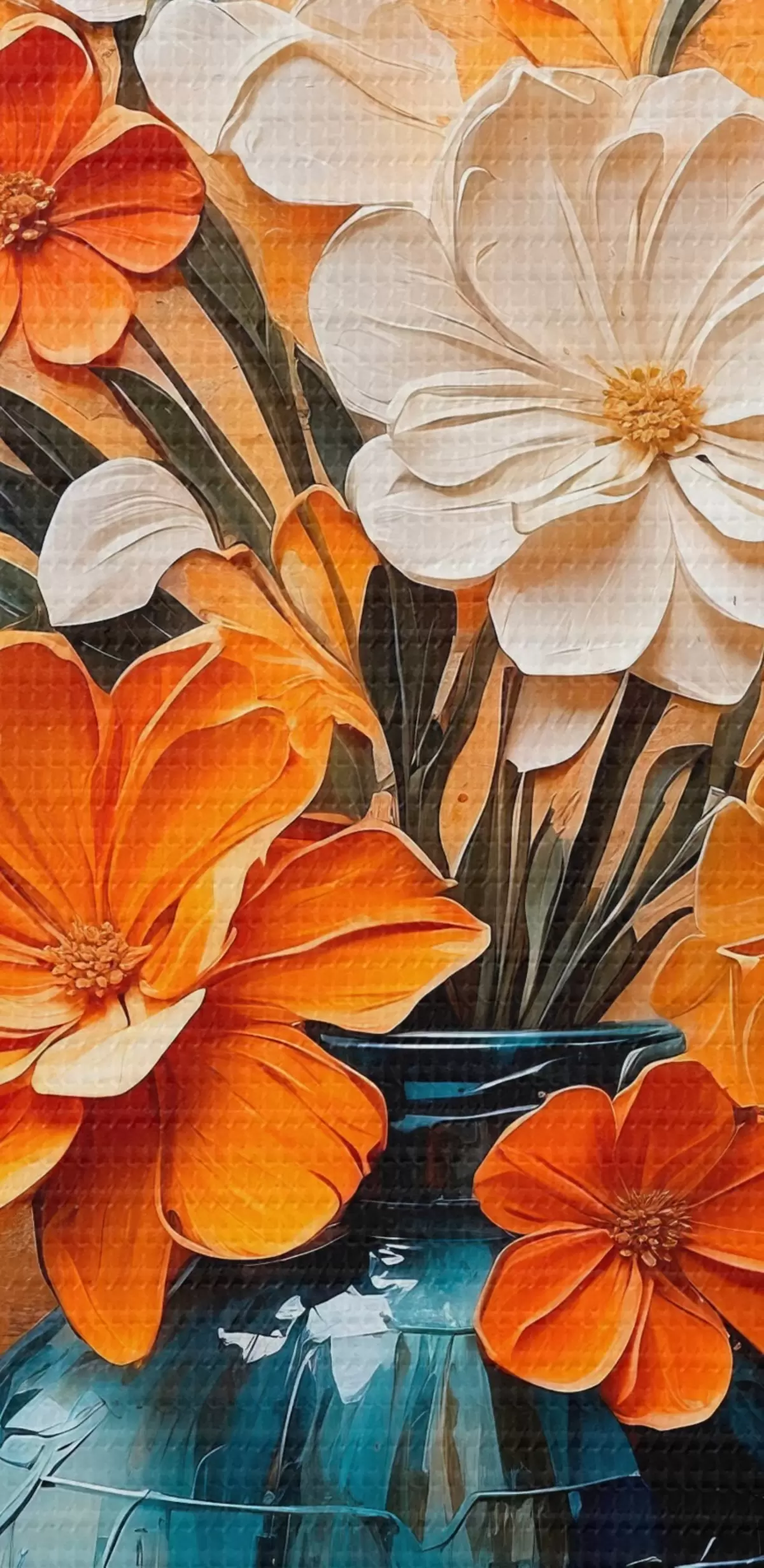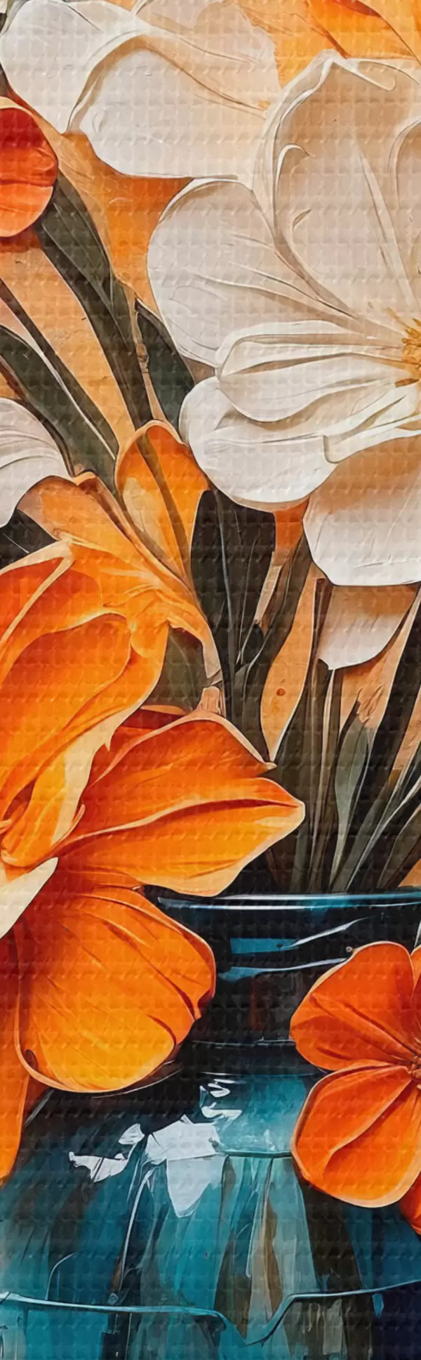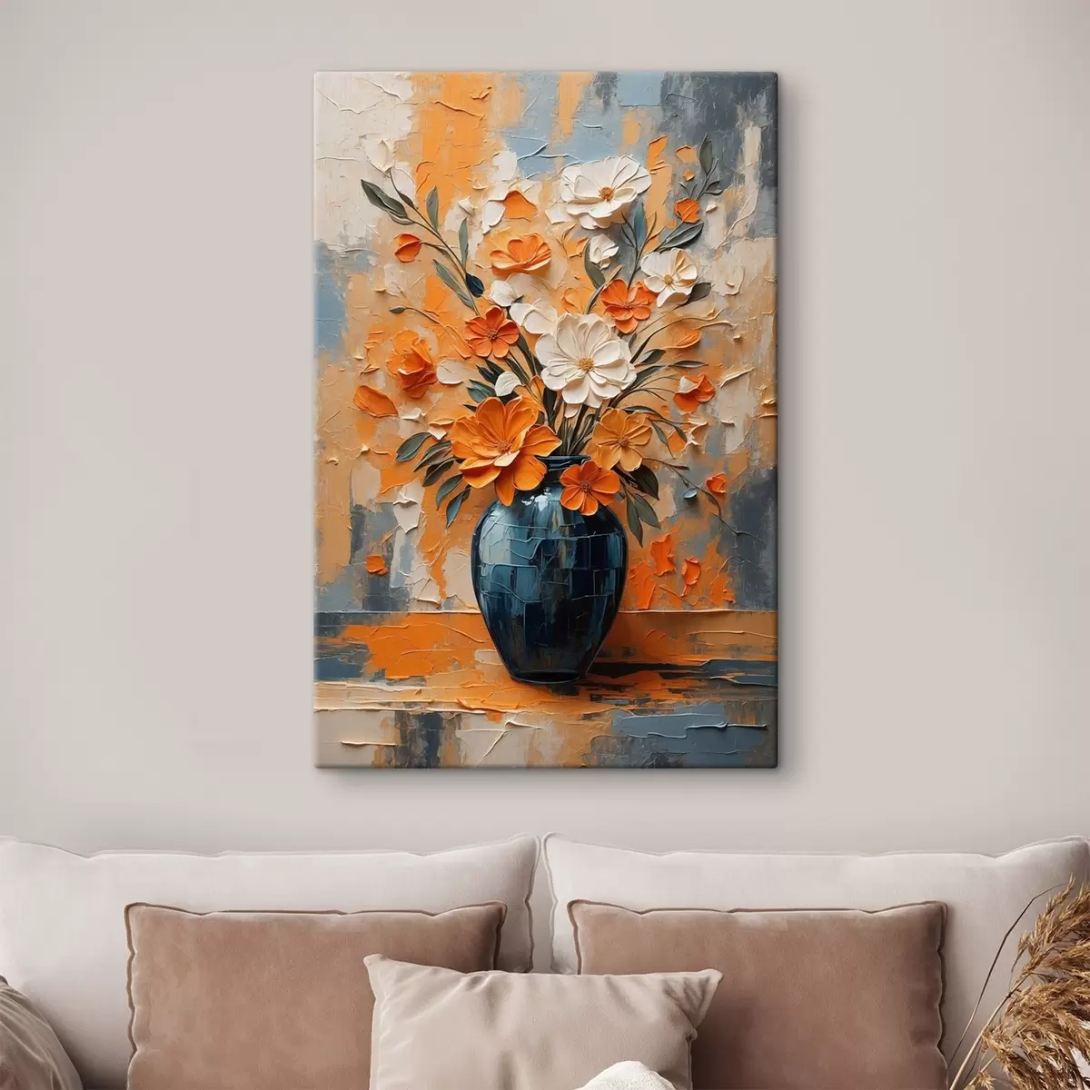 Obraz Biele a oranžové kvety vo váze v štýle olejomaľby Nr. s44059