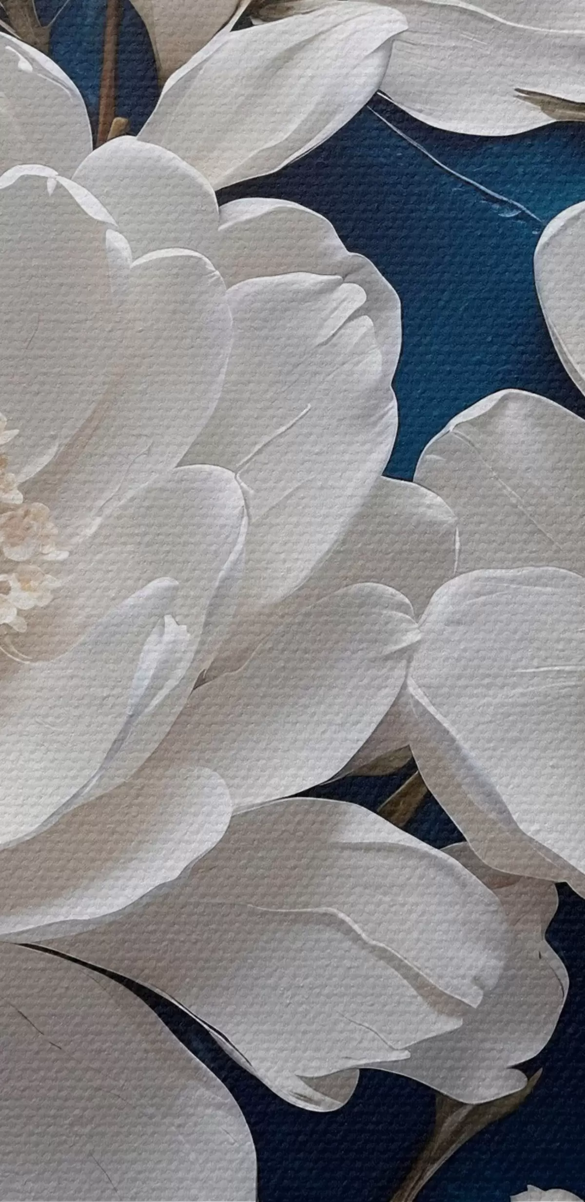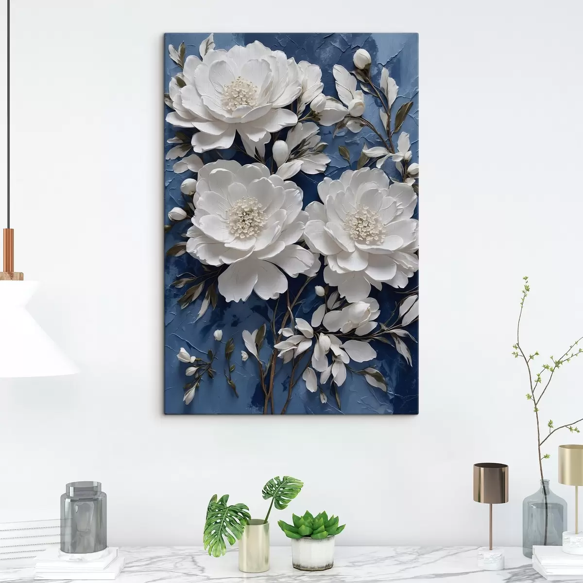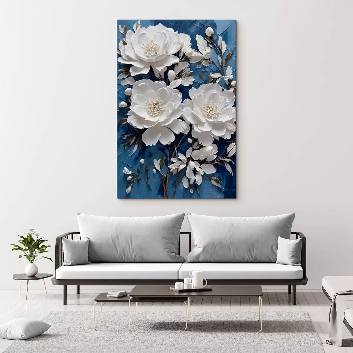 Obraz Biele kvety na modrom pozadí olejomaľby Nr. s44091