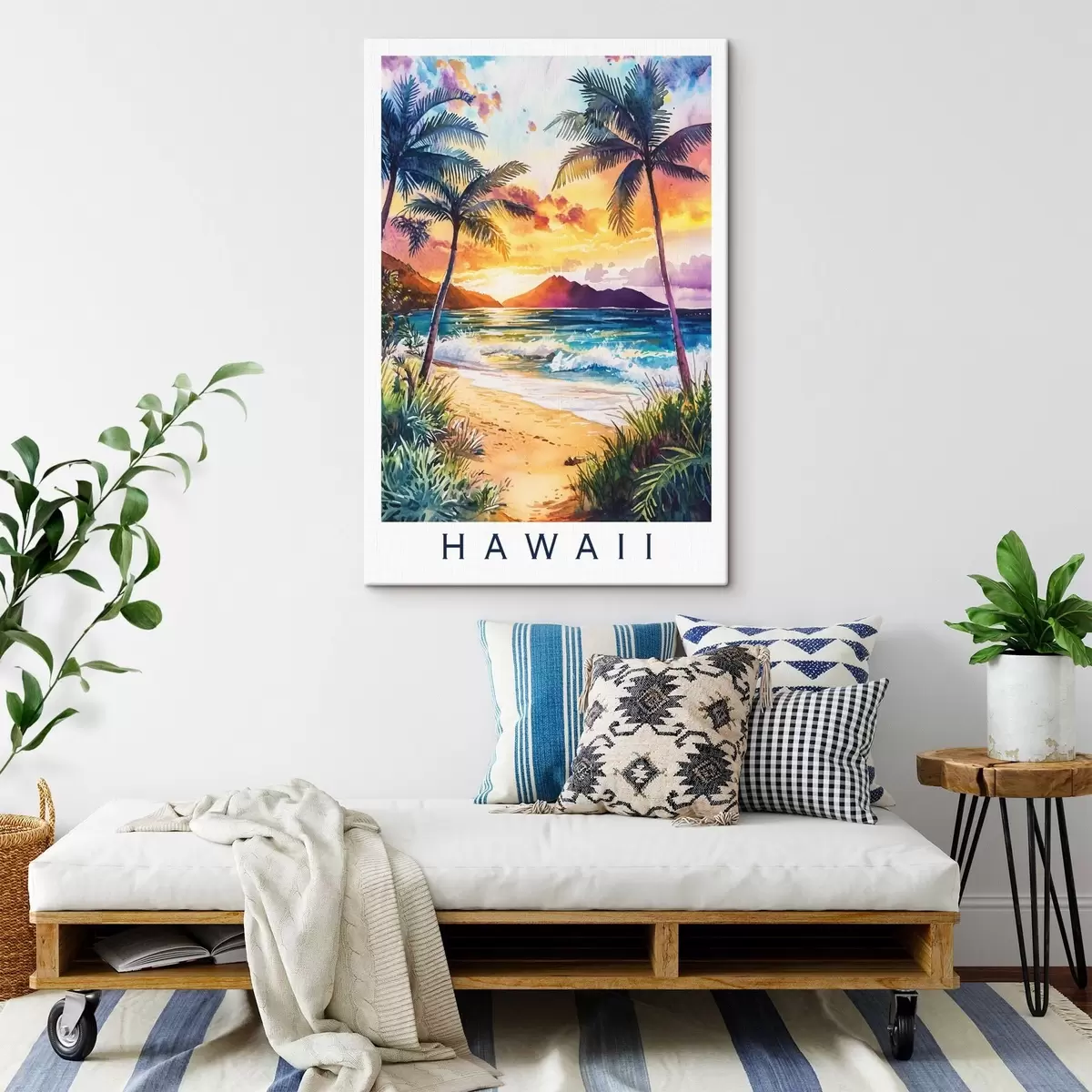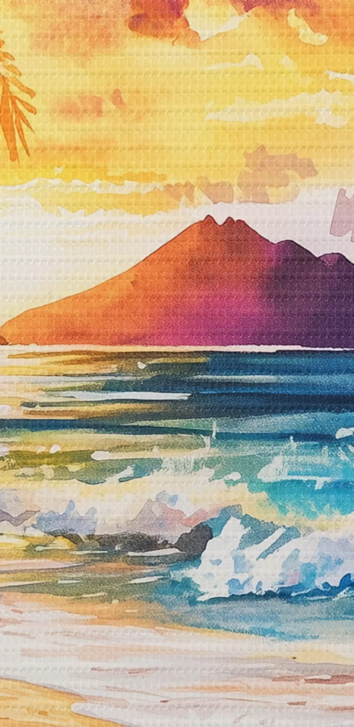 Obraz Západ slnka na ostrove Havaj, palmy, oceán, farebná obloha, akvarel Nr. s44142